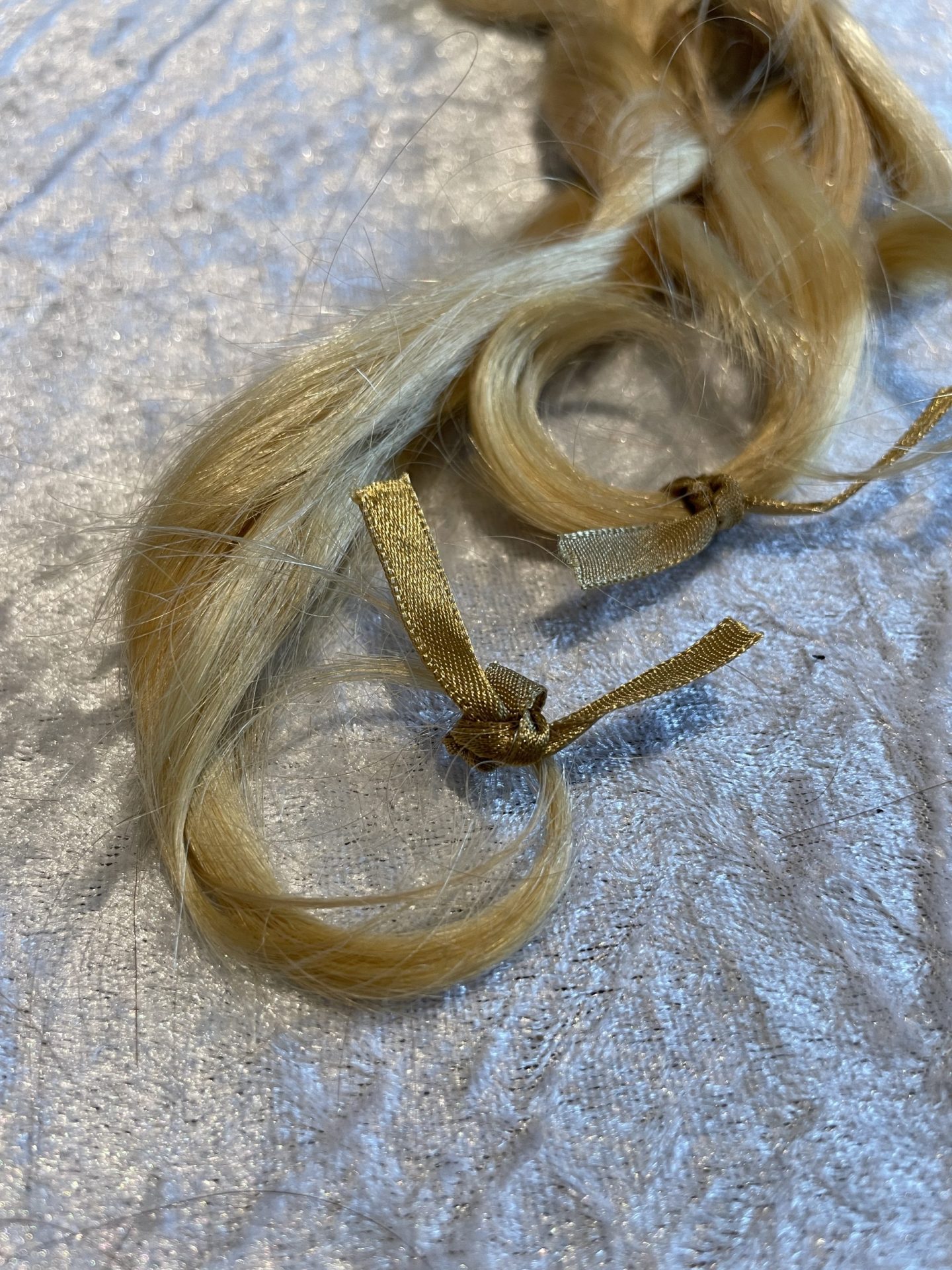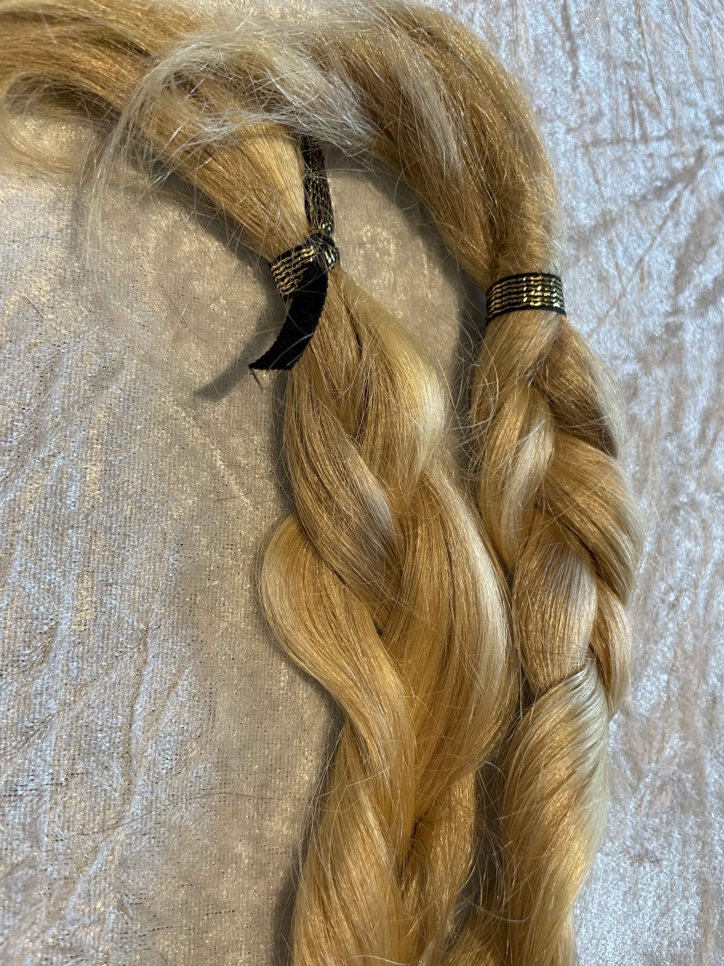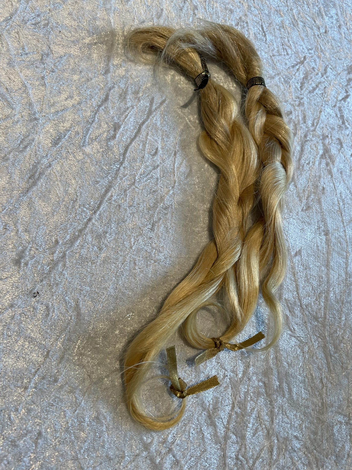 Bei Lieferungen in Nicht-EU-Länder können zusätzliche Zölle, Steuern und Gebühren anfallen.Kleiner blonder Zopf, fein, glatt mit leichtem Schwung, glänzend, leichte Struktur, Haar ist etwas trocken, braucht eine Kur. Blondiert, war vorher Mittelblond, leichte Strähnen. Länge 30 cm in Spitzen bis etwa 36 cm. Hat Unterlängen. Gemessen in geflochtenem Zustand.