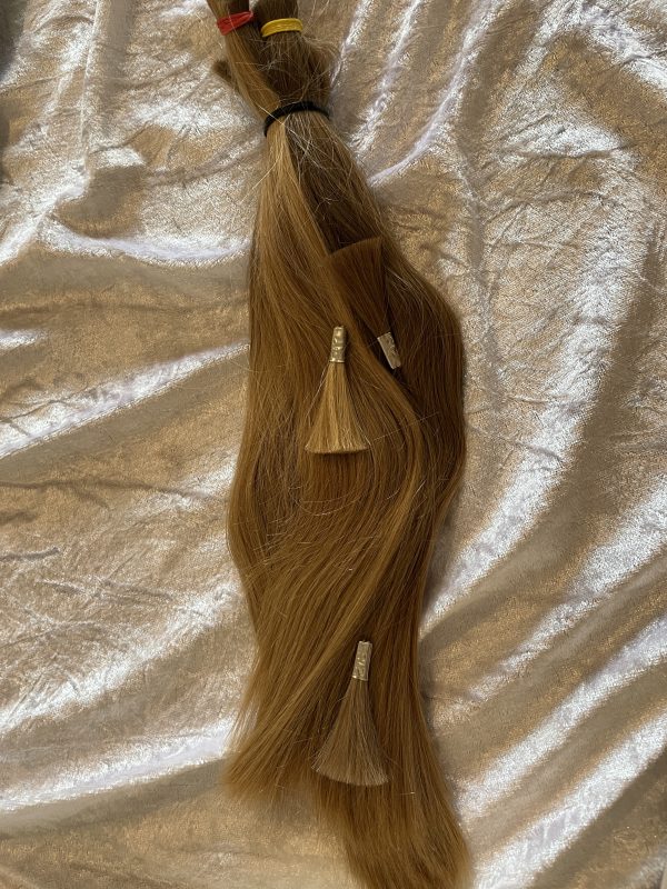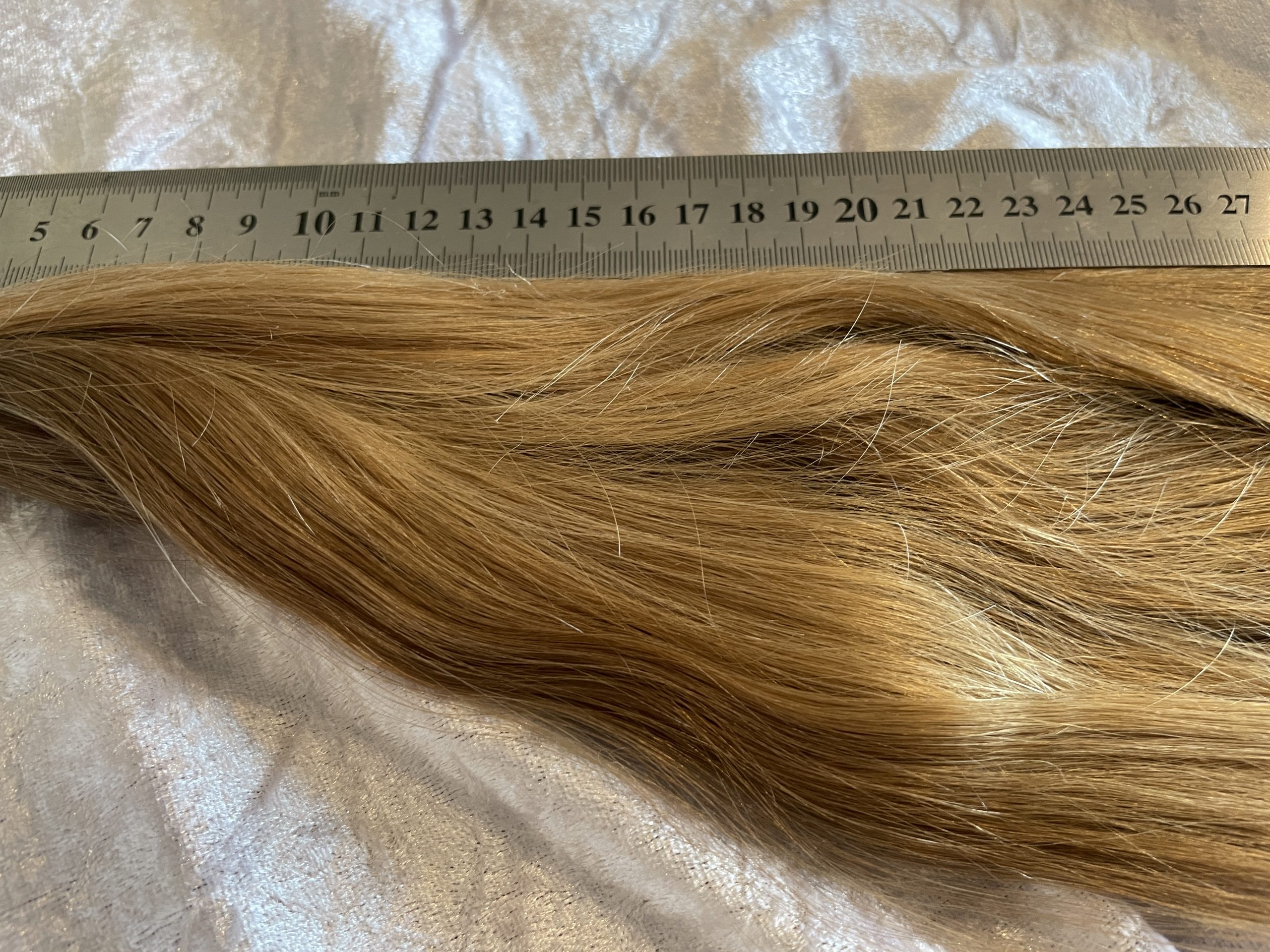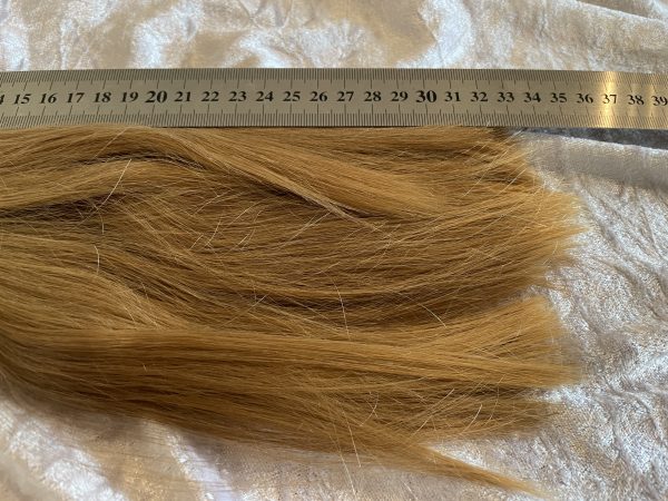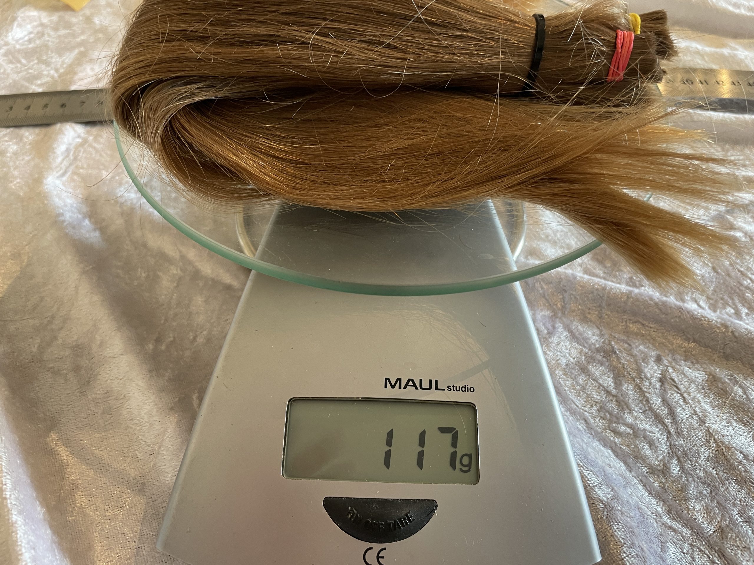 Bei Lieferungen in Nicht-EU-Länder können zusätzliche Zölle, Steuern und Gebühren anfallen.Wunderschöner, blonder Zopf, seidig glänzend und recht fein, ohne Struktur, fällt trotzdem recht recht voll, weil er 116 g schwer ist. Top gepflegtes Haar mit natürlichen Reflexen/Strähnen und praktisch glatt. Länge 33 cm, hat Unterlängen.
