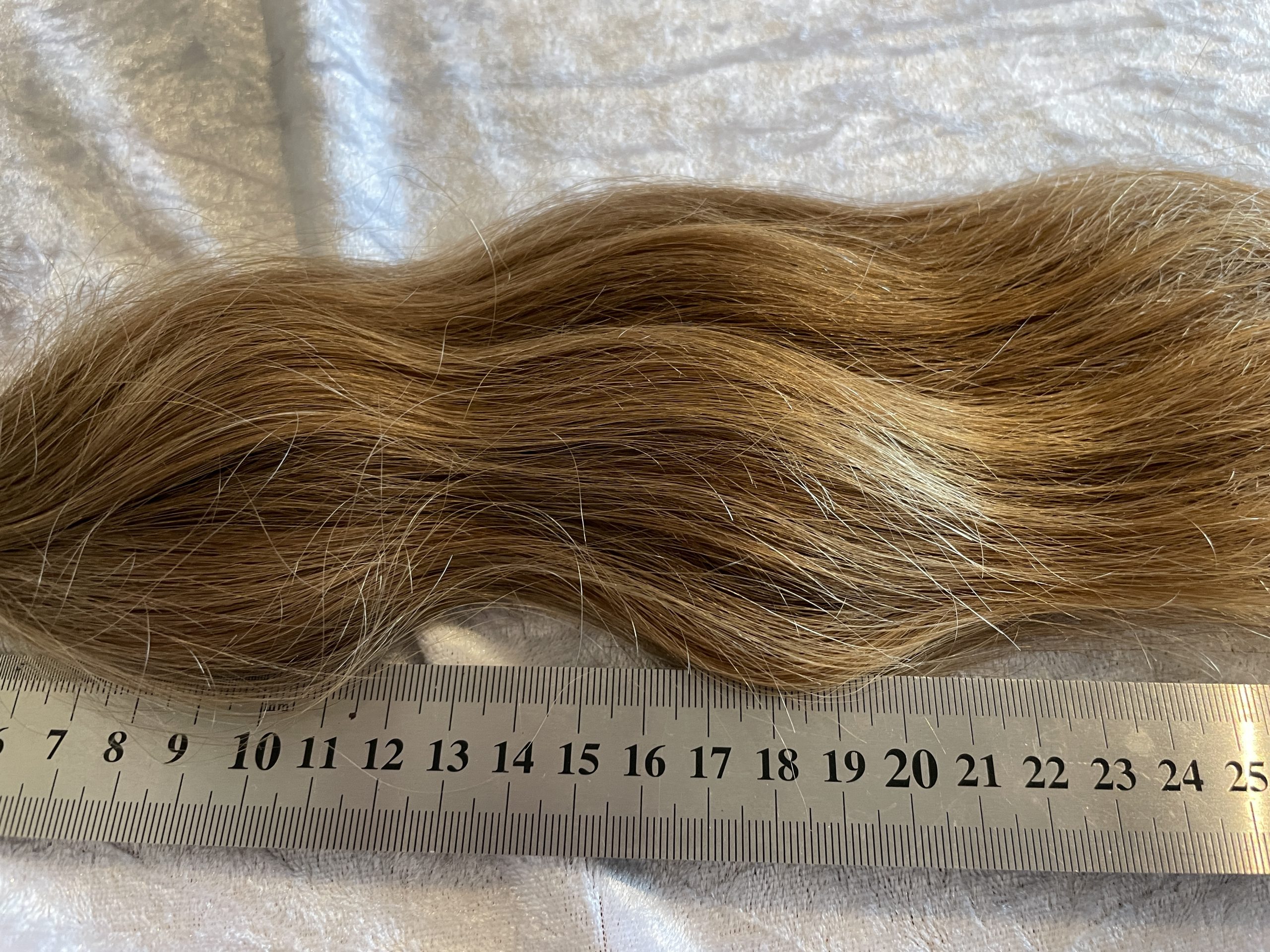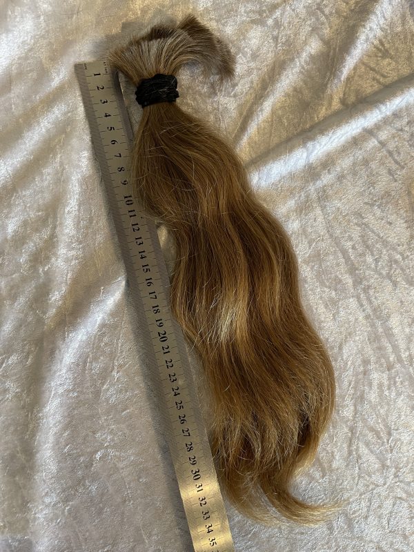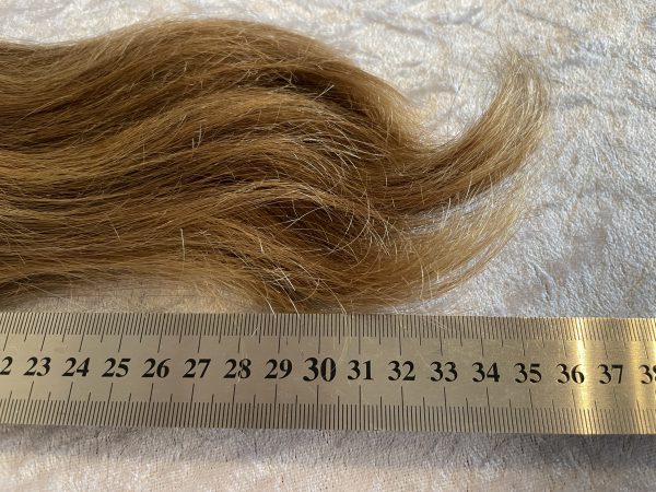 Bei Lieferungen in Nicht-EU-Länder können zusätzliche Zölle, Steuern und Gebühren anfallen.Schöner, kleiner, blonder Zopf, gut gepflegt, gute Struktur, recht fein, fällt sehr schön, 33 cm, in Spitzen bis 35 cm, hat einige Unterlängen.