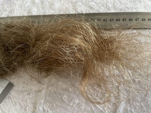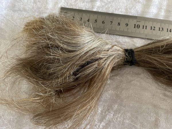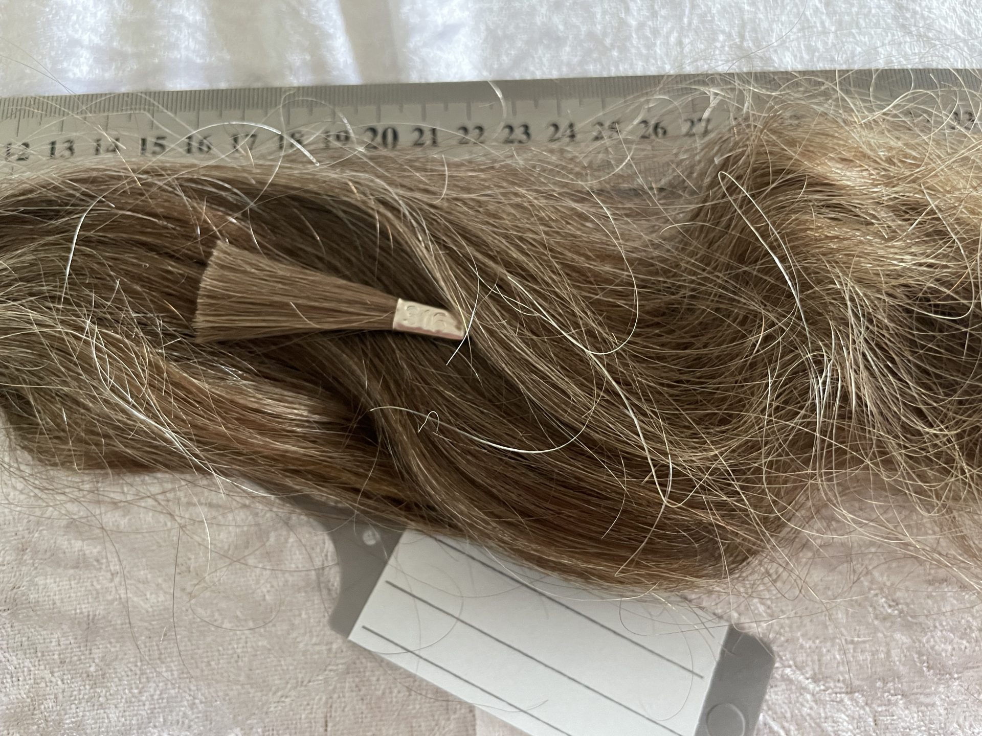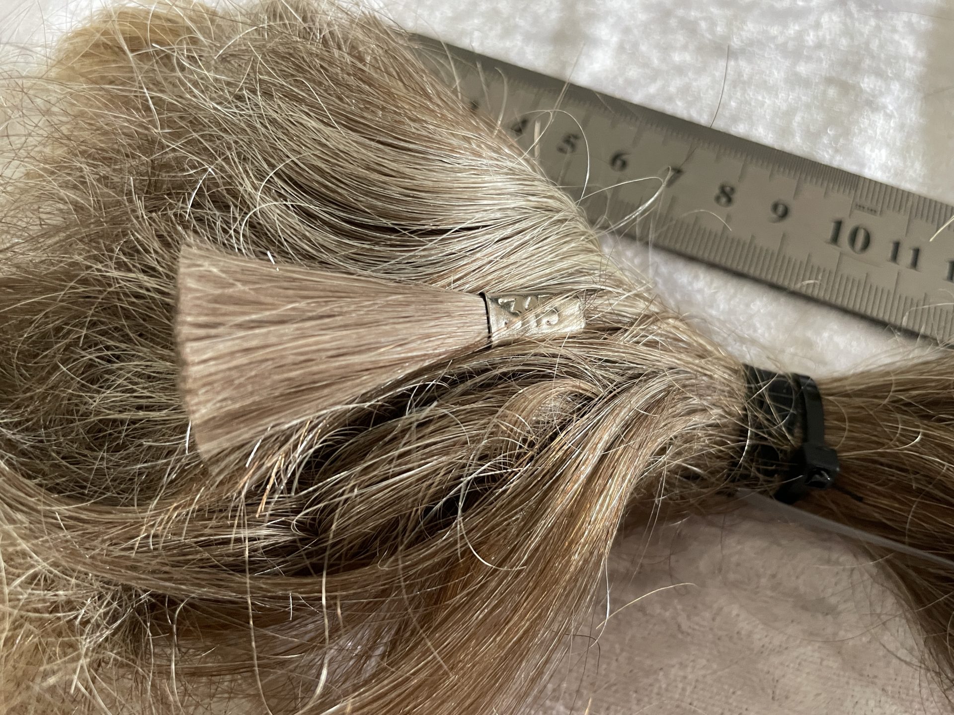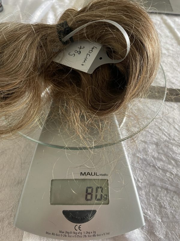 Bei Lieferungen in Nicht-EU-Länder können zusätzliche Zölle, Steuern und Gebühren anfallen.Schöner, fast grauer Zopf, blond, viel Struktur, krisselig, festes Haar, wellig, gepflegt. Zopf hat viele Unterlängen, daher wird her als Länge nur 40 cm angegeben in Spitzen deutlich länger. Grundfarbe 315, am Ansatz 316.