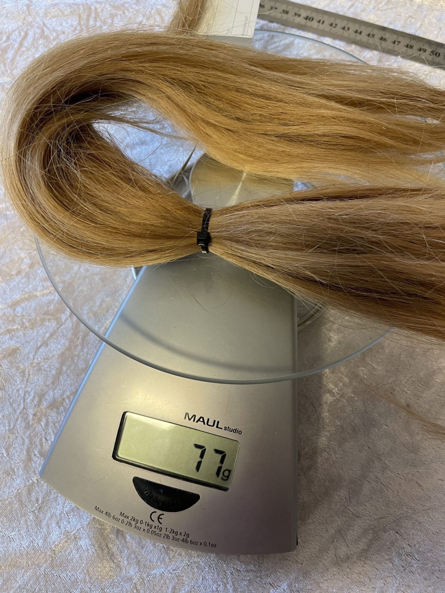 Bei Lieferungen in Nicht-EU-Länder können zusätzliche Zölle, Steuern und Gebühren anfallen.Schöner, blonder Zopf, gepflegt, leichte Struktur, glatt mit leichter Schwung, etwas strohig, 42 cm, in Spitzen deutlich länger, hat Unterlängen.