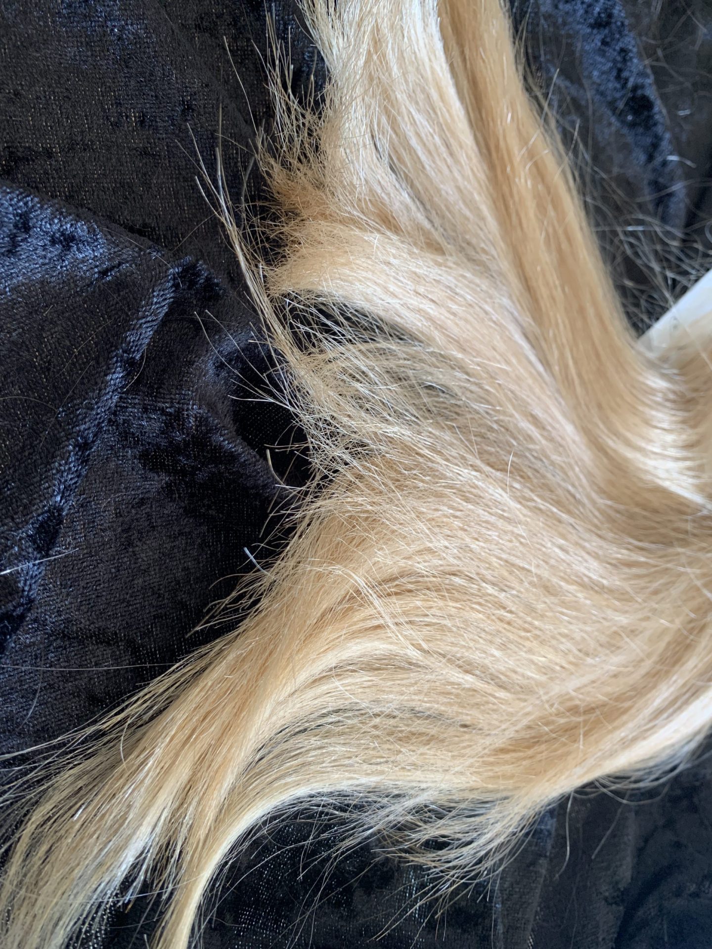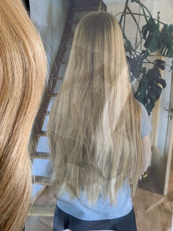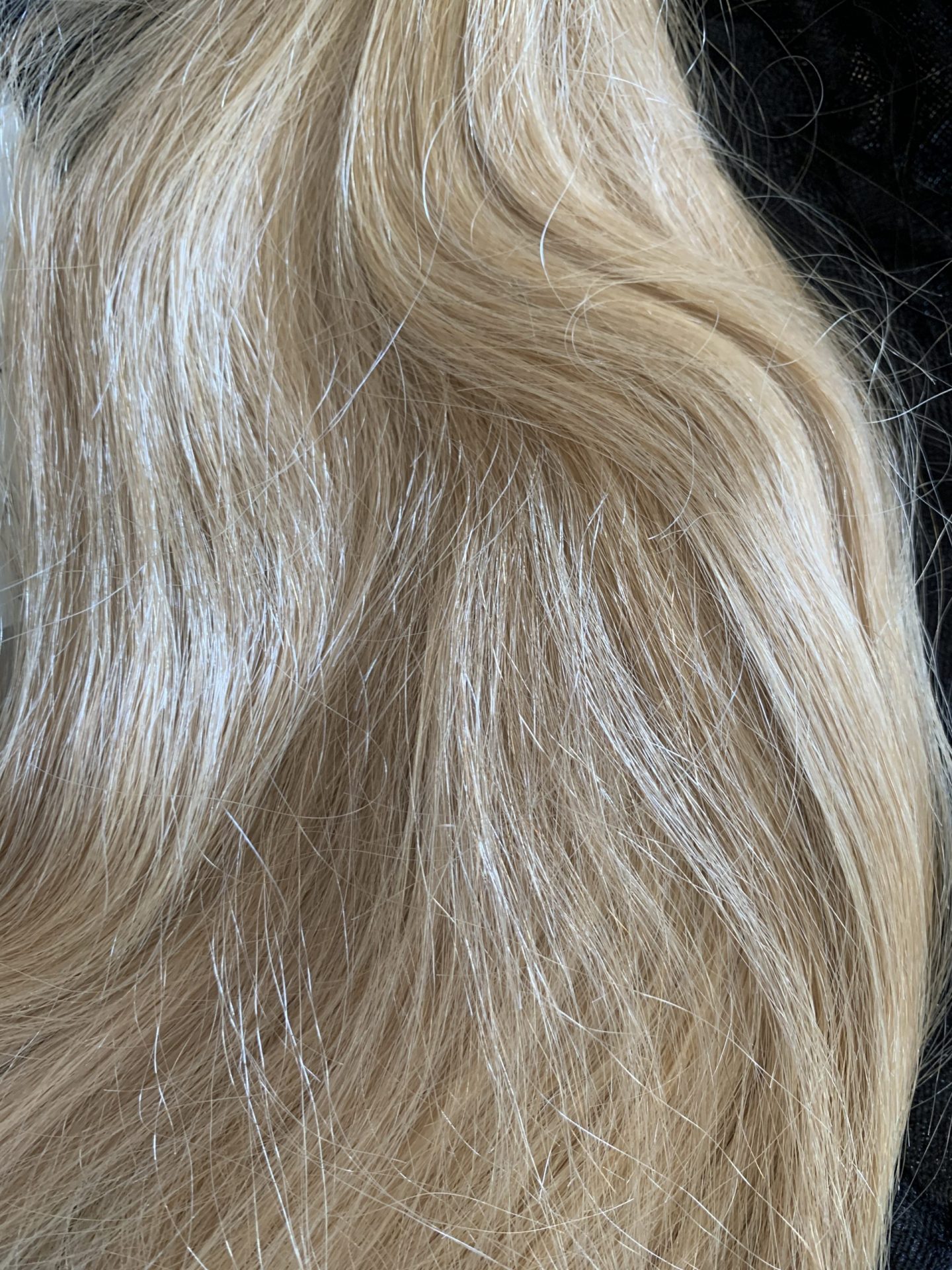 Das letzte Bild zeigt die ehemalige Besitzerin. Das Haar fällt sehr voll und wunderschön.