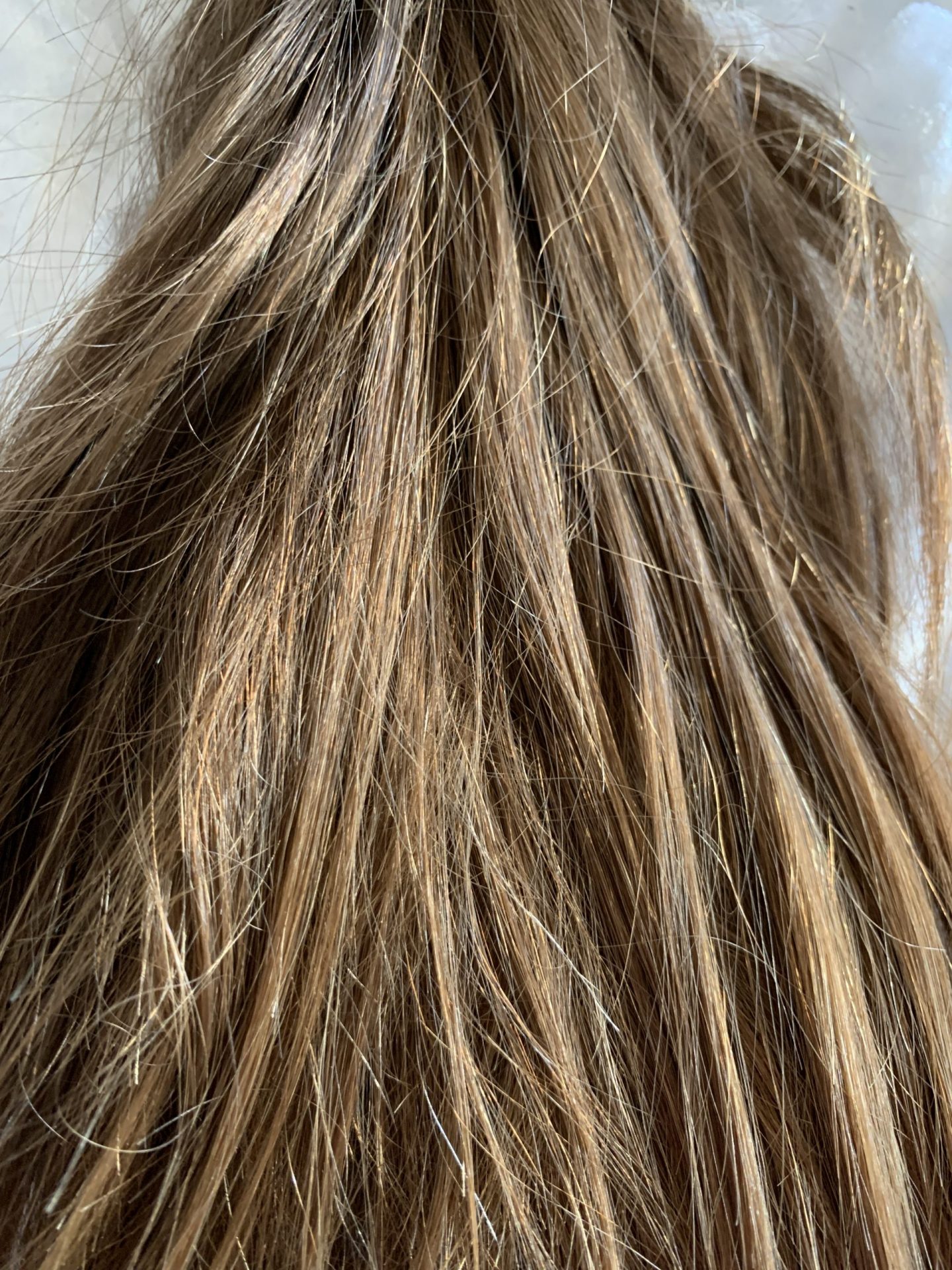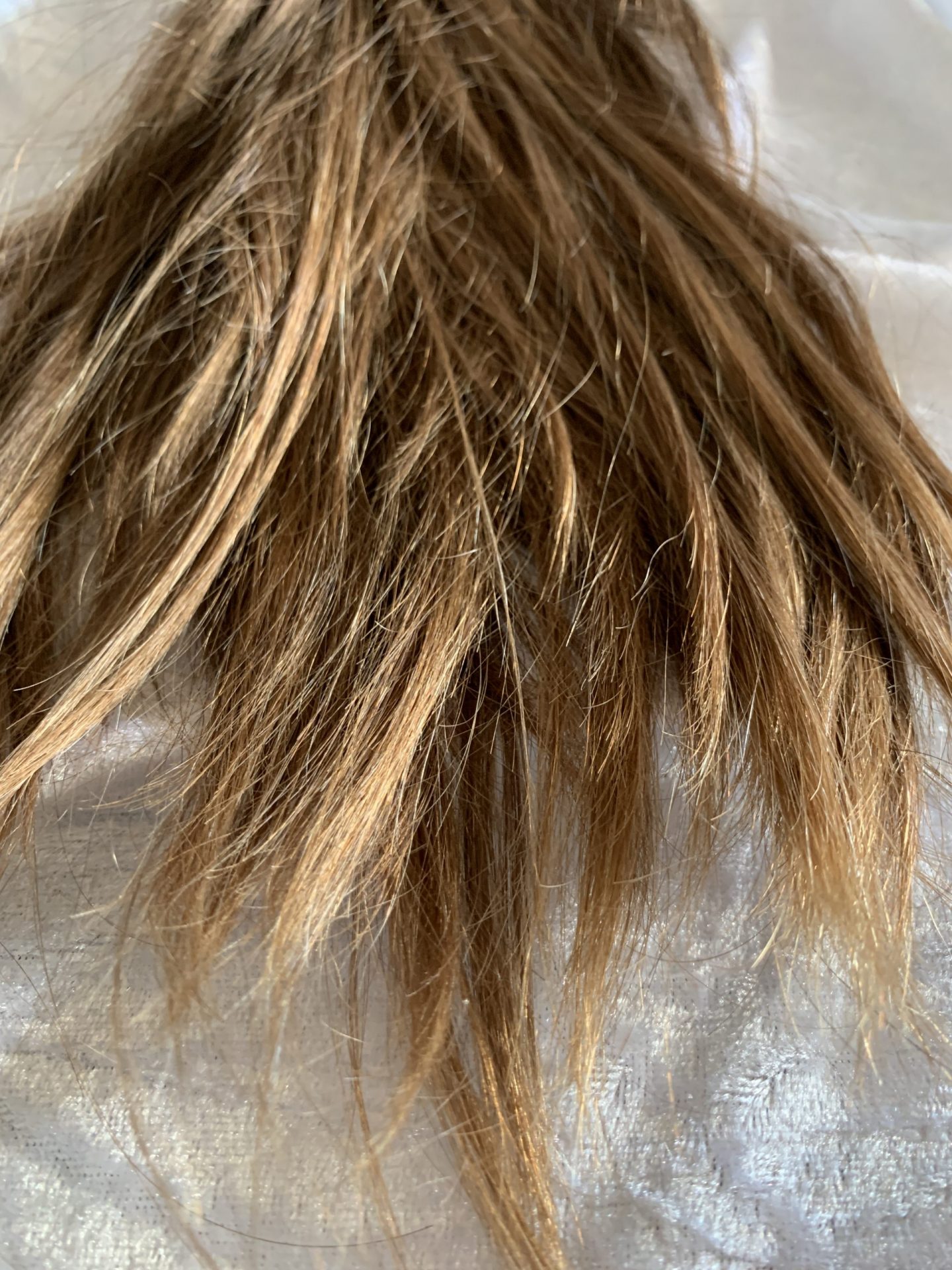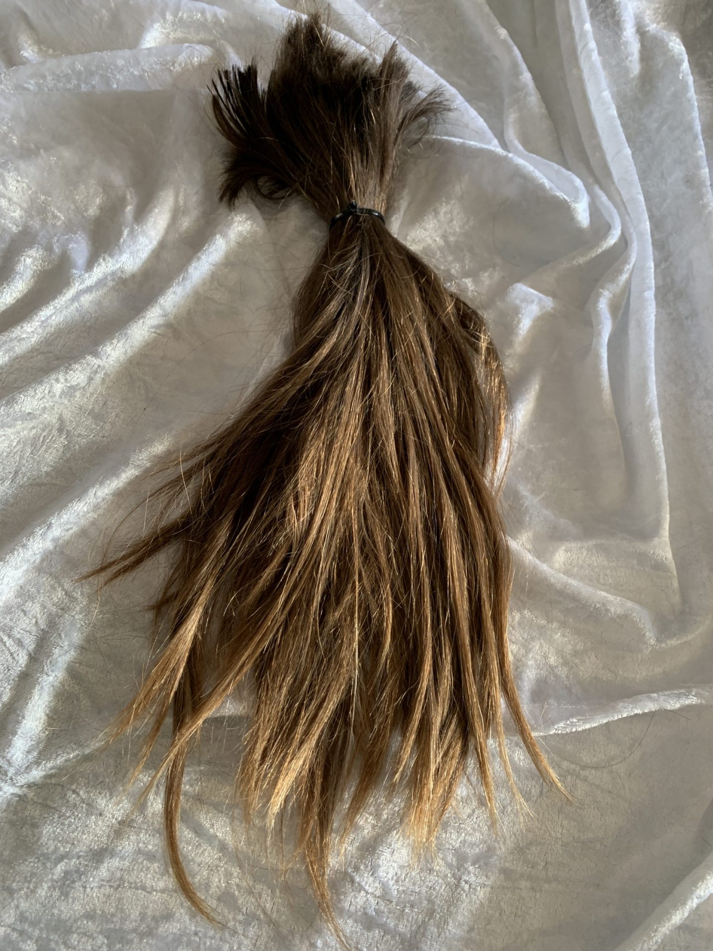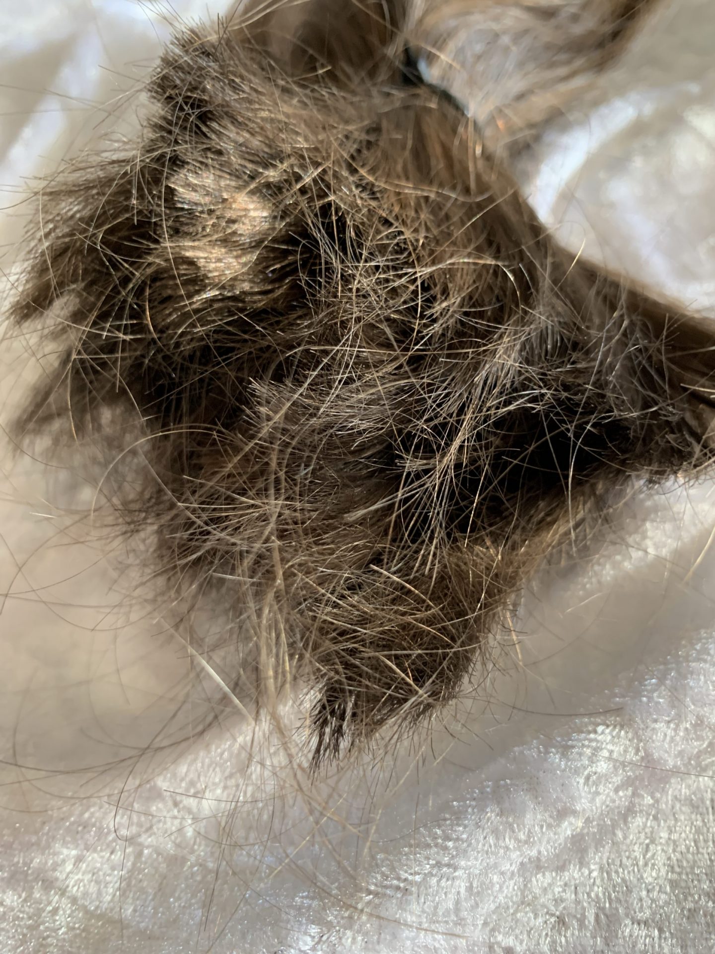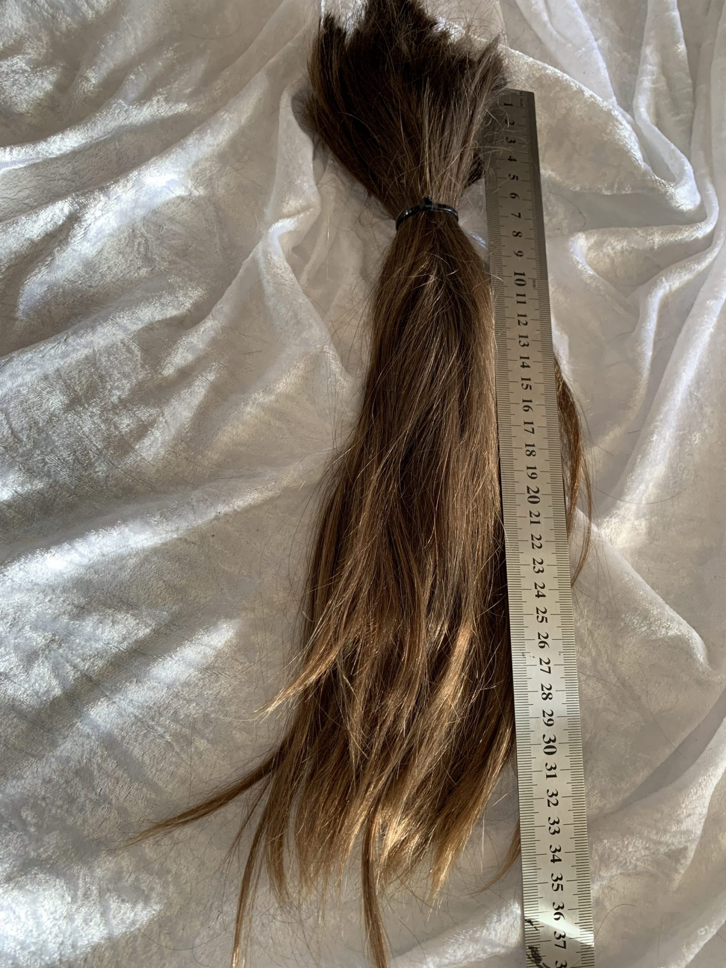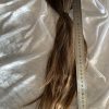 Bei Lieferungen in Nicht-EU-Länder können zusätzliche Zölle, Steuern und Gebühren anfallen.Voller brauner Zopf, 128 Gramm, griffig, mäßig glänzend. Länge 30 cm, in Spitzen bis ca. 35 cm, hat Unterlängen. In Spitzen heller als am Ansatz (natürlich ausgebleicht). Etwas fettig, braucht Pflege.