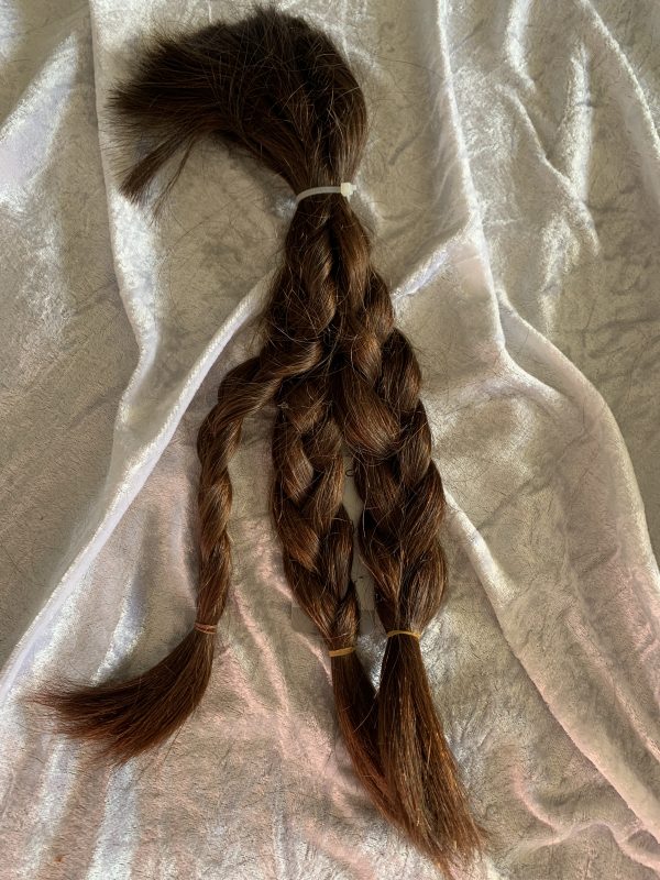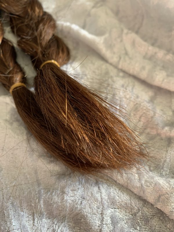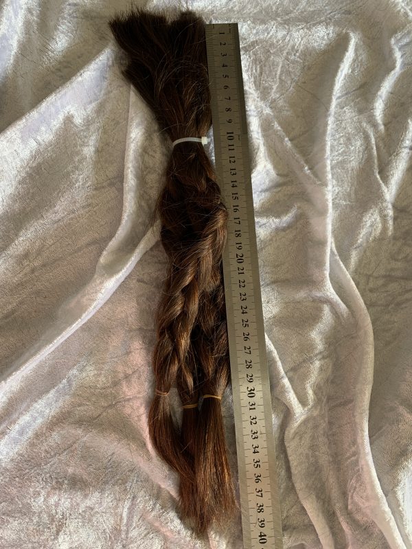 Bei Lieferungen in Nicht-EU-Länder können zusätzliche Zölle, Steuern und Gebühren anfallen.Schöner voller, brauner Zopf, gepflegt, etwas trocken, seidig glänzend, 38 cm, in Spitzen länger, (geflochten), wenige Unterlängen.