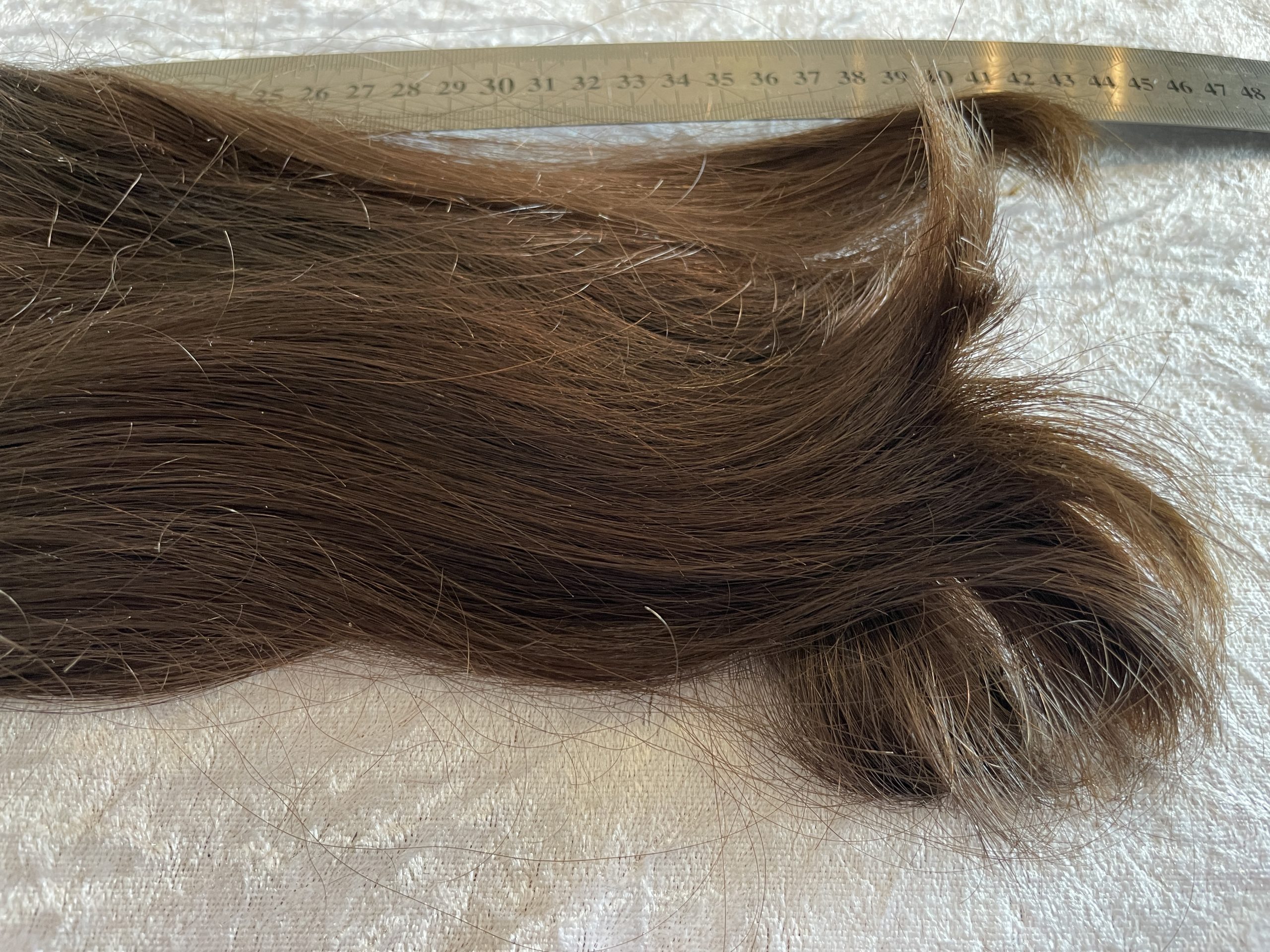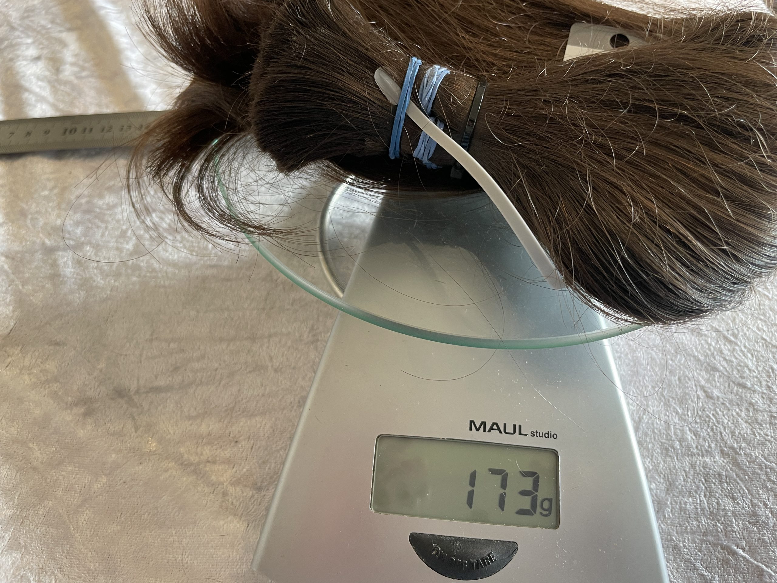 Bei Lieferungen in Nicht-EU-Länder können zusätzliche Zölle, Steuern und Gebühren anfallen.Schwerer, voller, brauner Zopf. Gepflegt, ordentliche Struktur, kräftig, fällt schön voll, 40 cm, in Spitzen länger, hat Unterlängen.