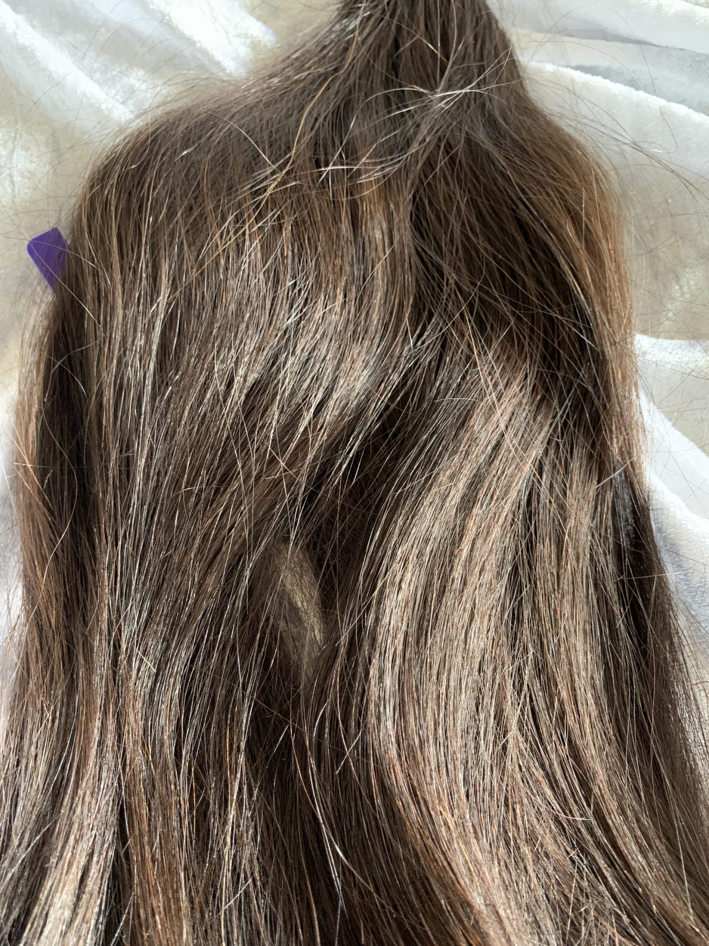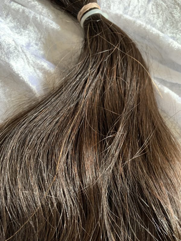 Bei Lieferungen in Nicht-EU-Länder können zusätzliche Zölle, Steuern und Gebühren anfallen.Sehr schöner brauner Zopf, glatt, mit leichter Struktur und ganz leichtem Schwung, gut gepflegt, hat wenig Unterlängen, 45 cm, in Spitzen bis 48 cm. Fasst sich gut an, fällt recht voll.