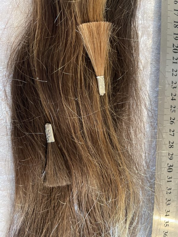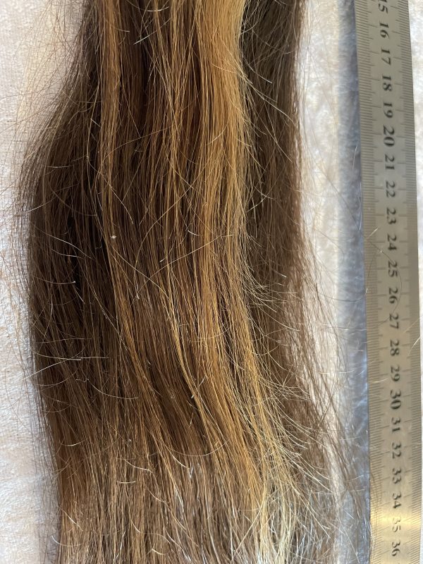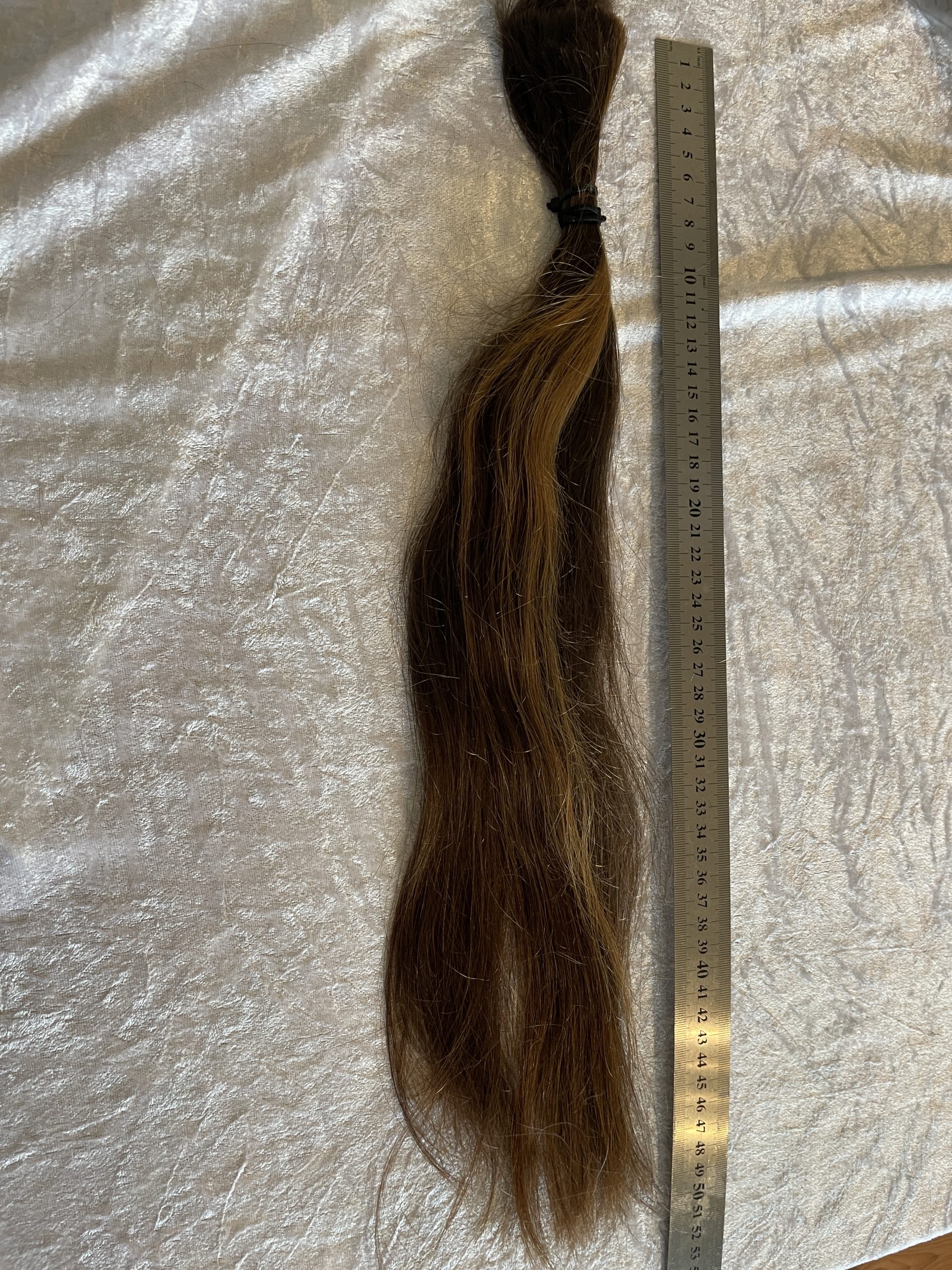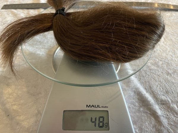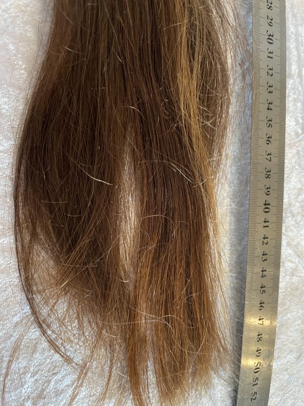 Bei Lieferungen in Nicht-EU-Länder können zusätzliche Zölle, Steuern und Gebühren anfallen.Dünner, brauner Zopf, gepflegt, leichte Struktur, recht fein, fällt sehr schön, 48 cm, in Spitzen bis über 50 cm, hat einige Unterlängen. Etwa 5 g davon sind gesträhnt. Wurde bei der Preisfindung berücksichtigt.