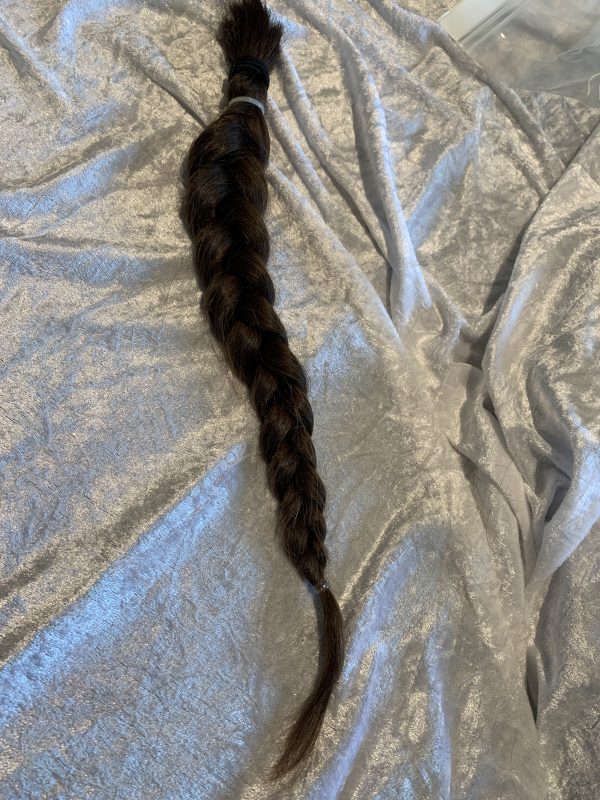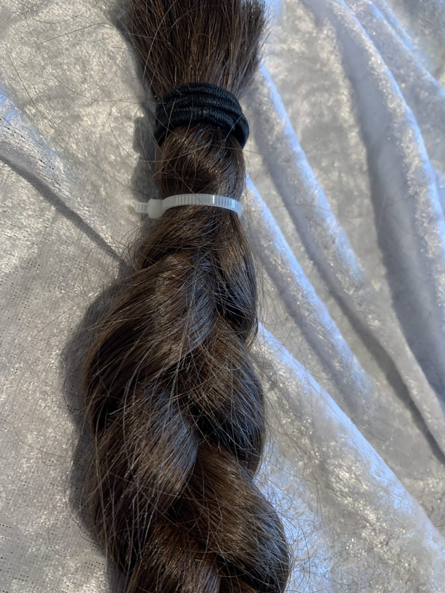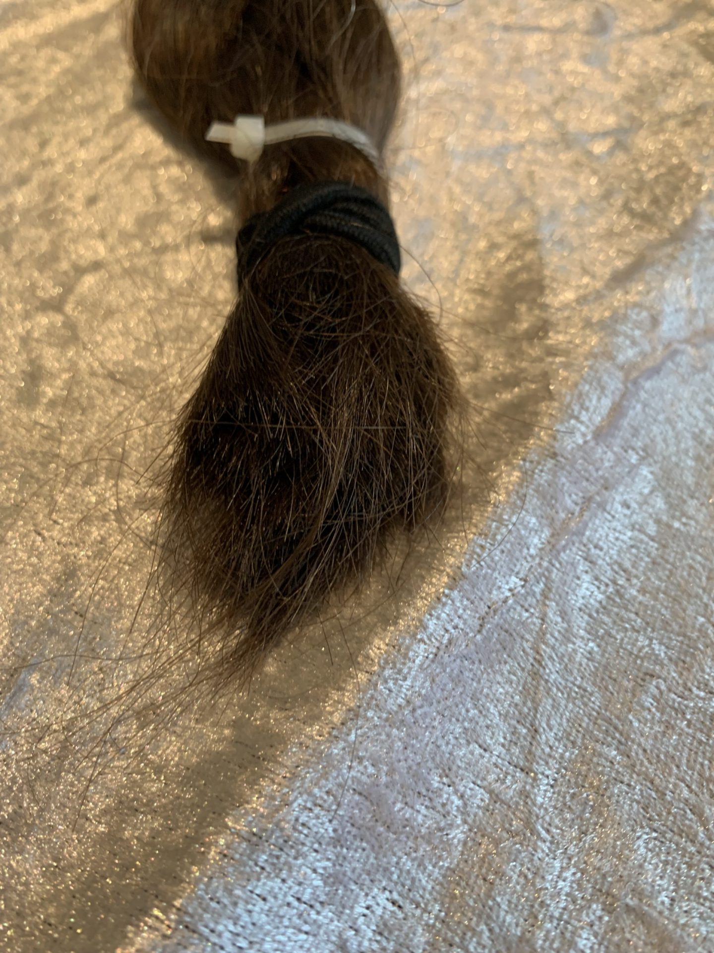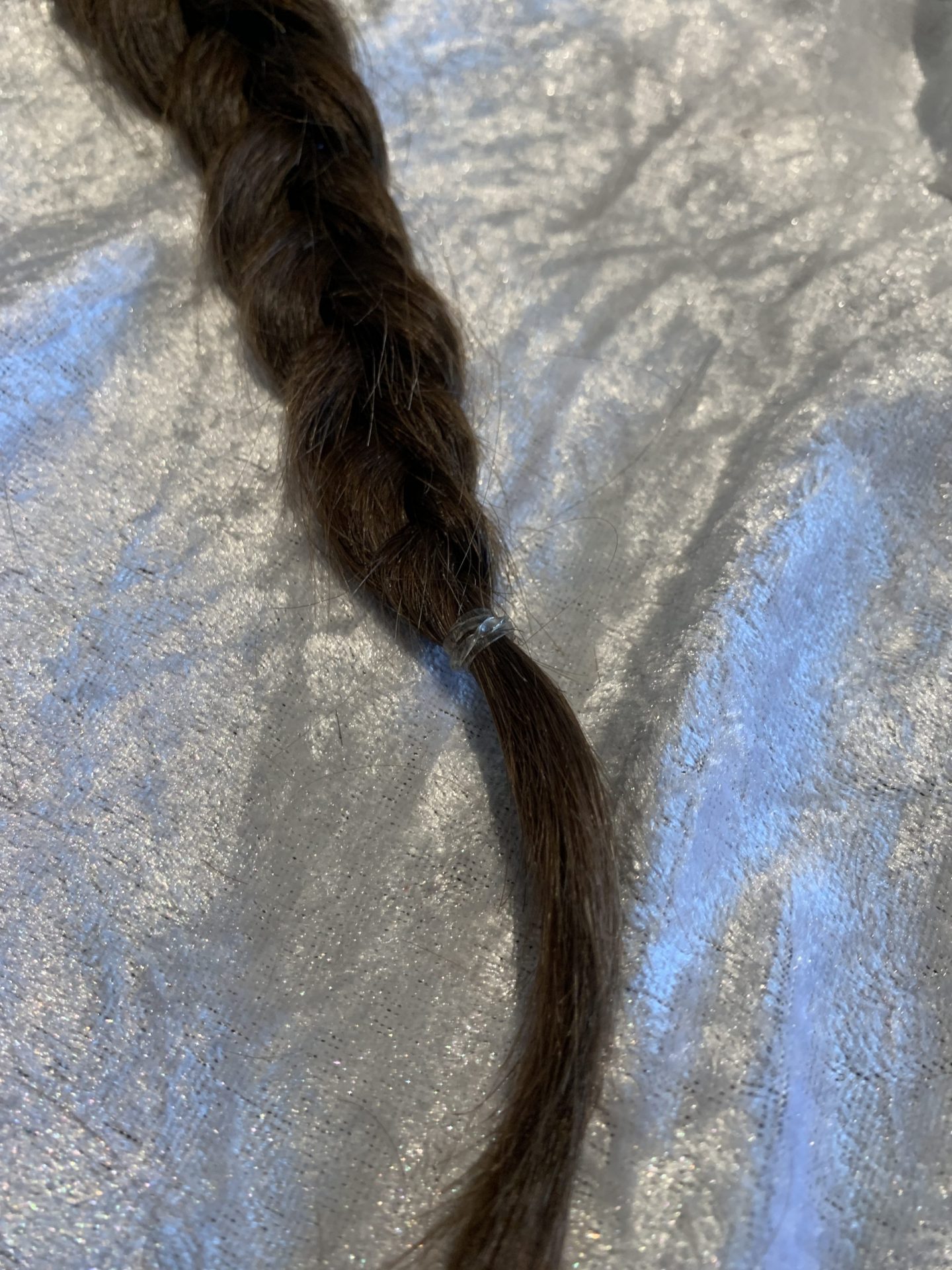Bei Lieferungen in Nicht-EU-Länder können zusätzliche Zölle, Steuern und Gebühren anfallen.Dunkelblonder Zopf, griffig, leichte Struktur, etwas trocken, leichter Schwung, Länge 35 cm, in Spitzen bis über 40 cm (geflochten), deutliche Unterlängen.