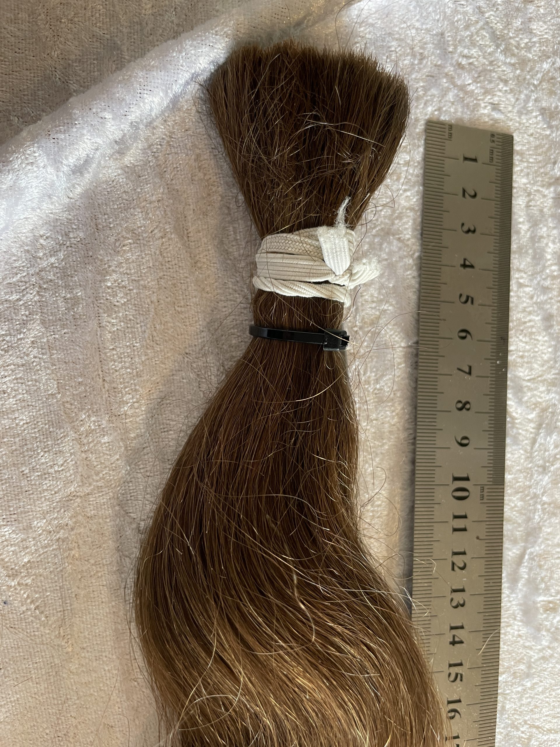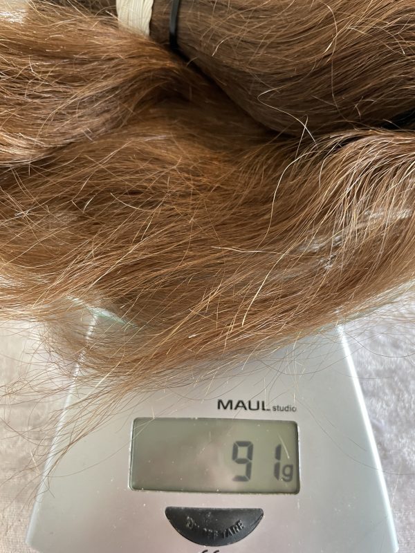 Bei Lieferungen in Nicht-EU-Länder können zusätzliche Zölle, Steuern und Gebühren anfallen.Sehr schöner, dunkelblonder Zopf, gute Struktur, mittelfeines Haar, leichter Schwung, gepflegt. Zopf hat einige Unterlängen. Das Haar stammt von einem 10-jährigen Mädchen.