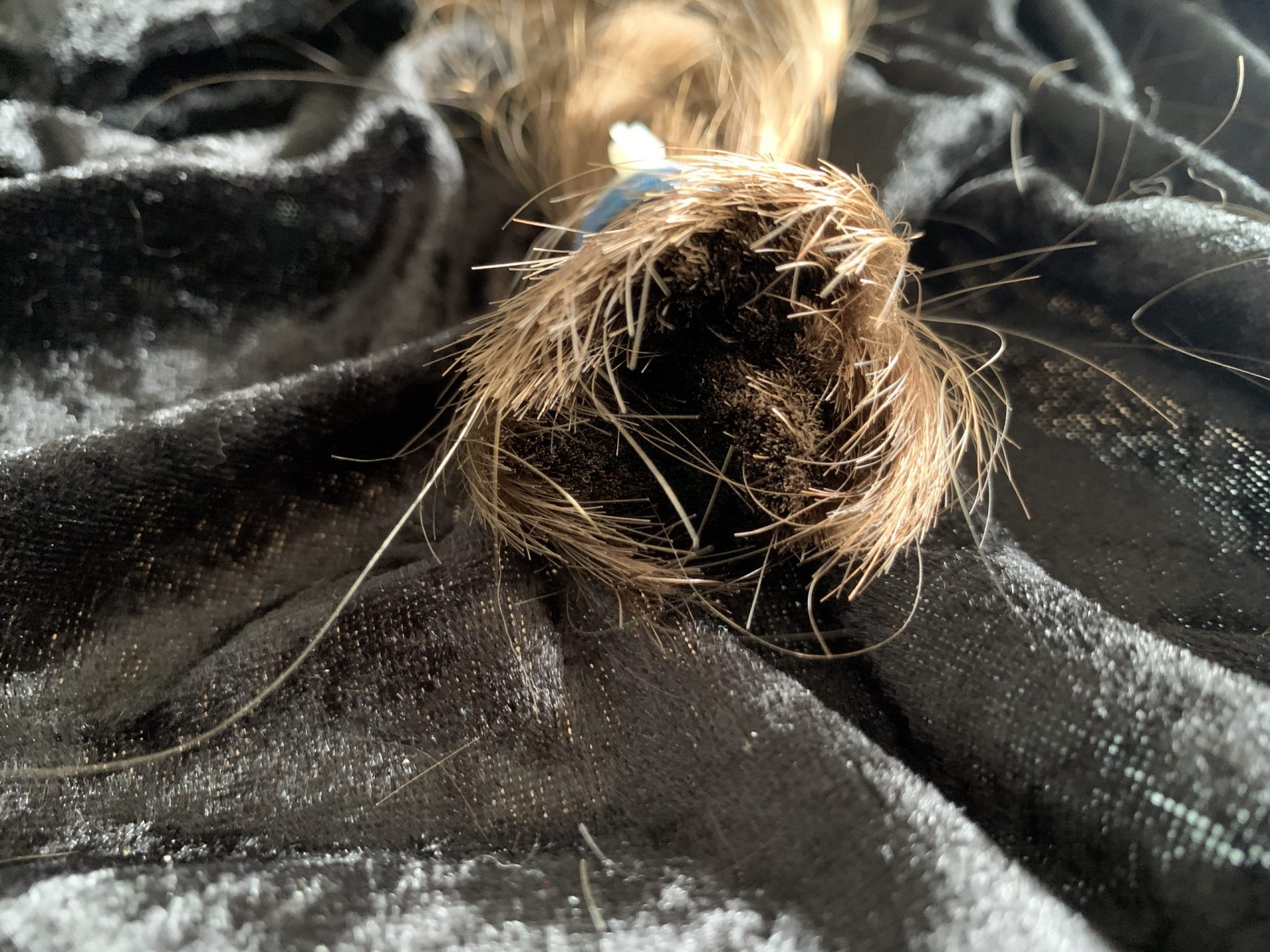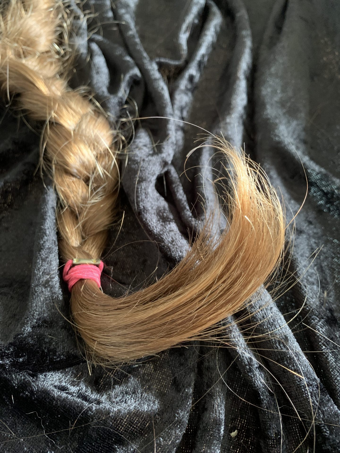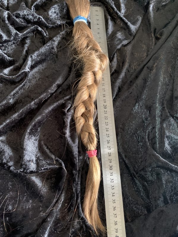 Bei Lieferungen in Nicht-EU-Länder können zusätzliche Zölle, Steuern und Gebühren anfallen.Sehr schöner, dunkelblonder Zopf, gut gepflegt, glatt, fein, fällt sehr schön, 46 cm, in Spitzen bis über 50 cm, hat einige Unterlängen.