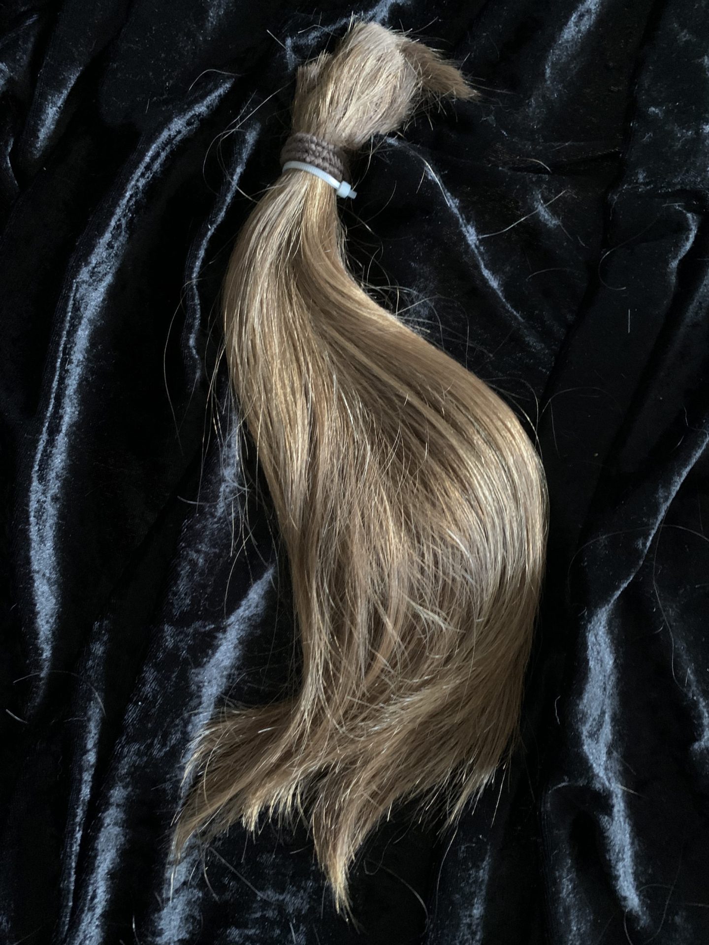 Bei Lieferungen in Nicht-EU-Länder können zusätzliche Zölle, Steuern und Gebühren anfallen.Kleiner, dunkelblonder Zopf mit, leichter Welle, gepflegt, hat wenig Unterlängen, daher 32 cm, in Spitzen bis 35. Fasst sich gut an, fällt recht voll.