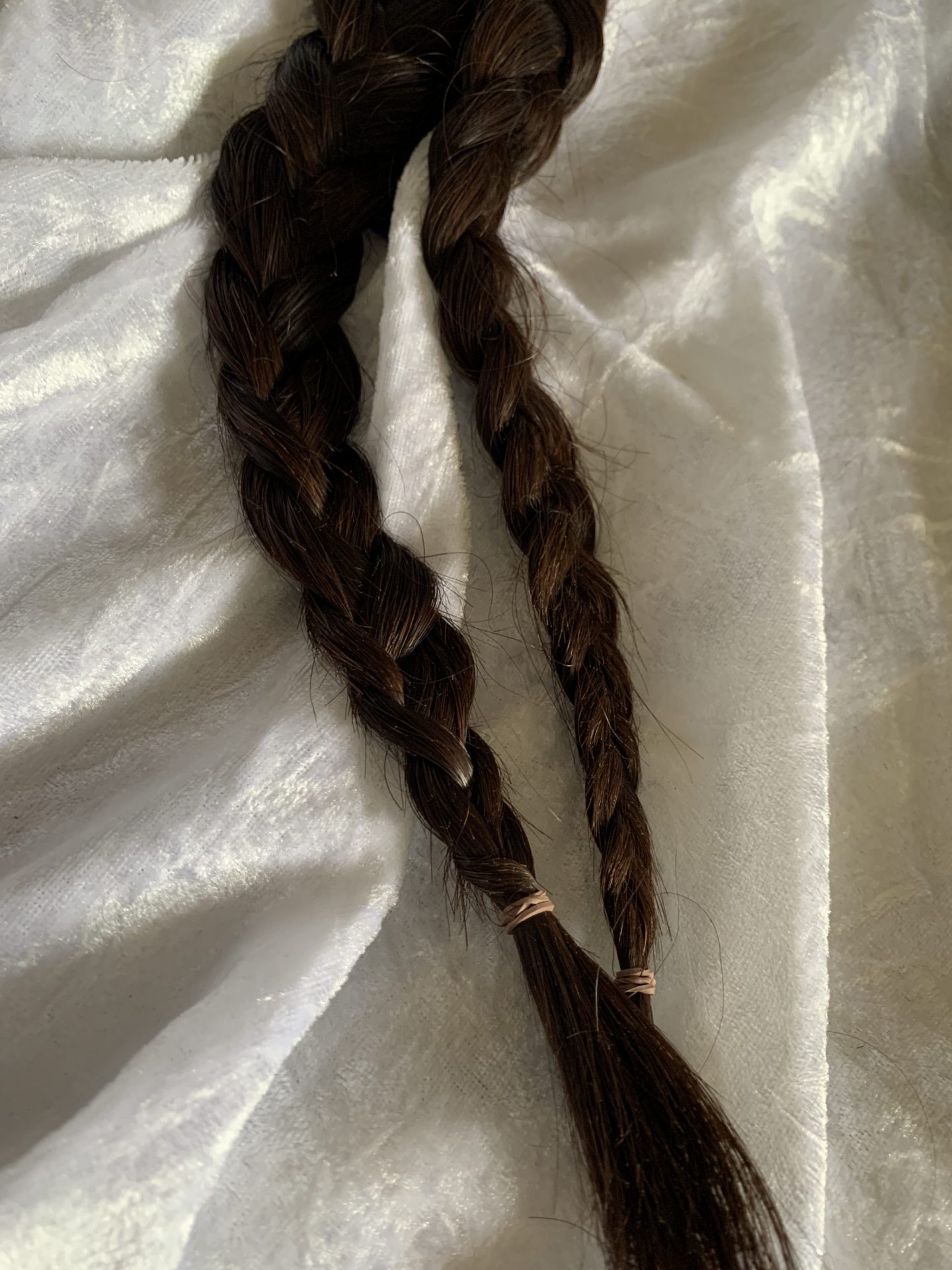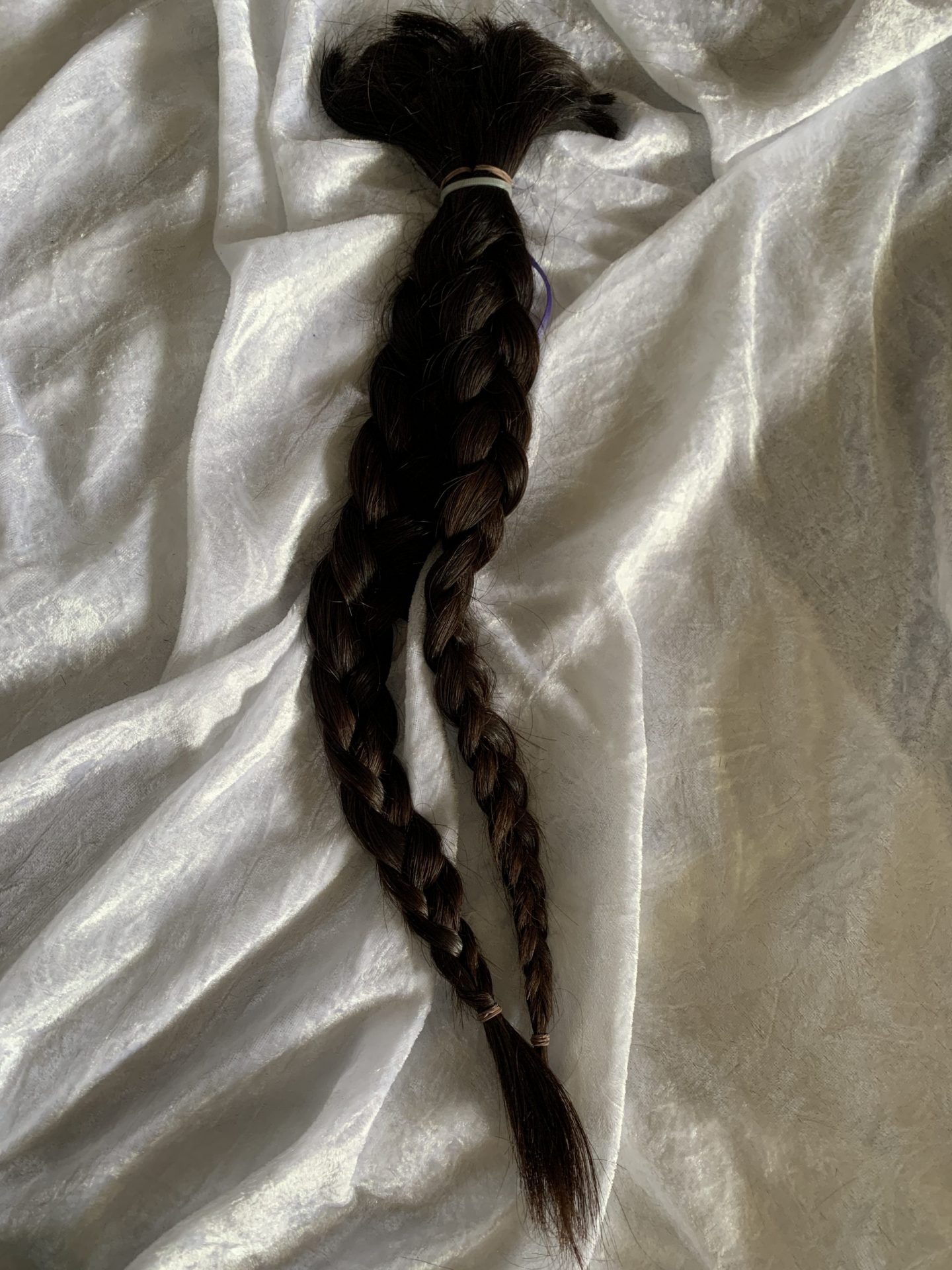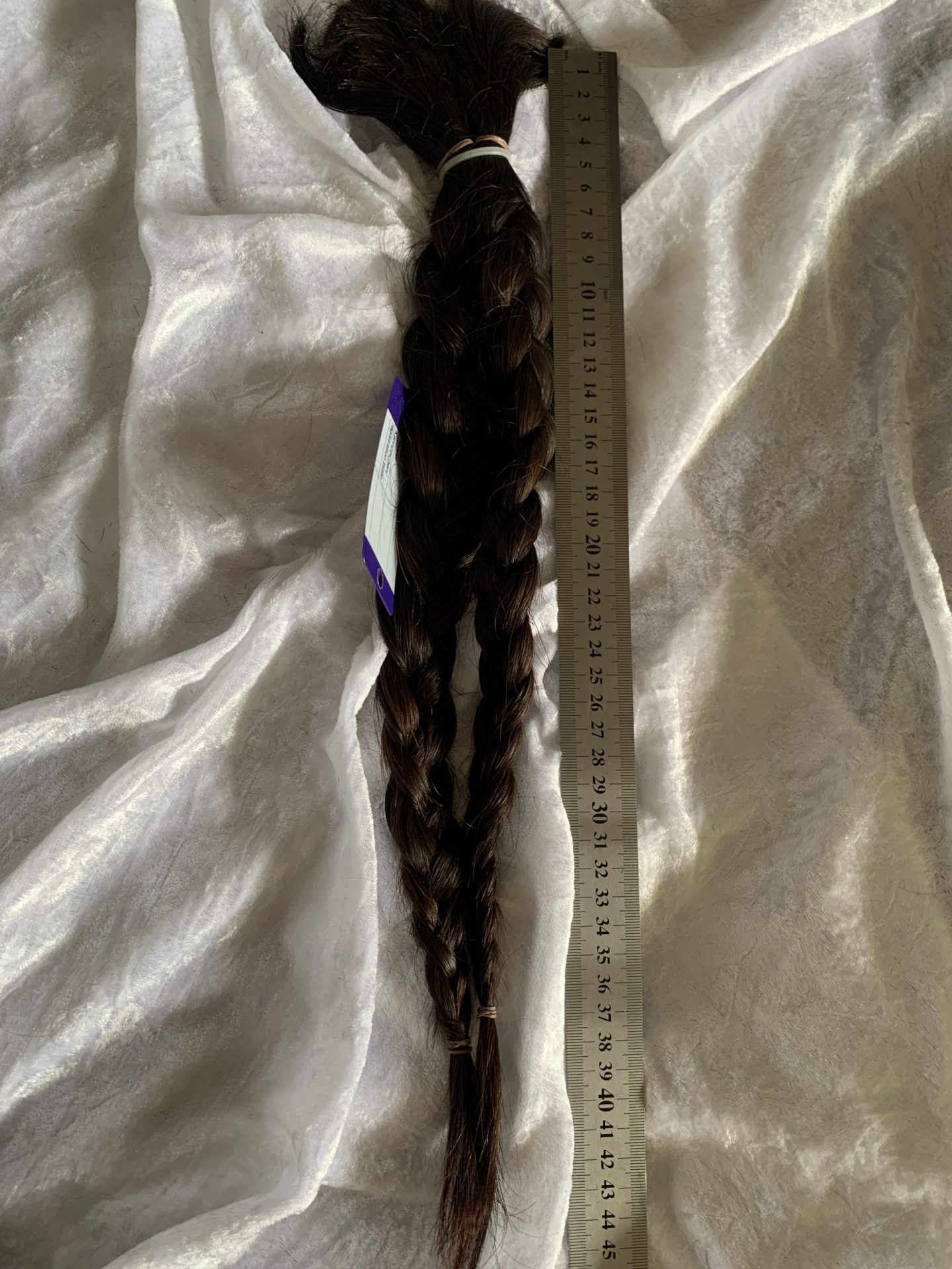 Bei Lieferungen in Nicht-EU-Länder können zusätzliche Zölle, Steuern und Gebühren anfallen.Sehr schöner, dunkelbrauner Zopf, gut gepflegt, glatt, fein, fällt sehr schön, 46 cm, in Spitzen bis über 50 cm, hat einige Unterlängen.