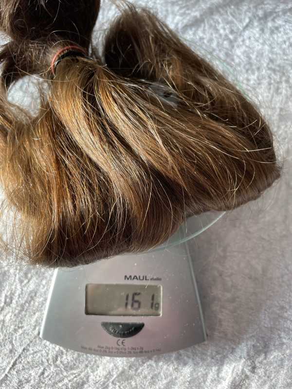 Bei Lieferungen in Nicht-EU-Länder können zusätzliche Zölle, Steuern und Gebühren anfallen.Sehr schöner Zopf, braun, gut gepflegt, leichte Struktur, leichter Schwung, sehr voll und schwer für diese Länge. Hat wenig Unterlängen, 38 cm in Spitzen länger.