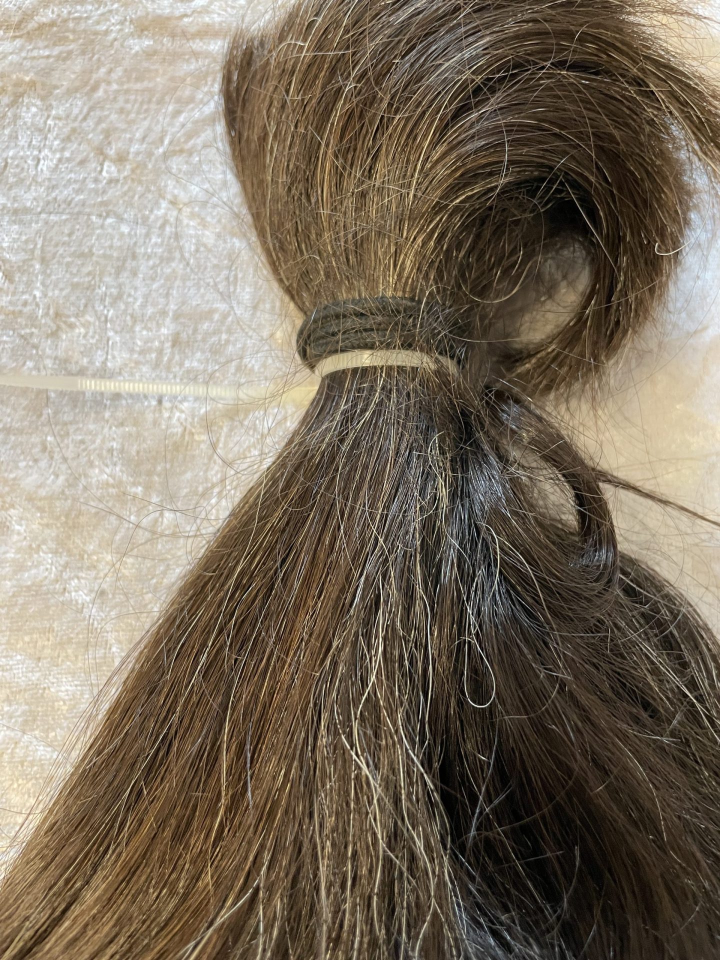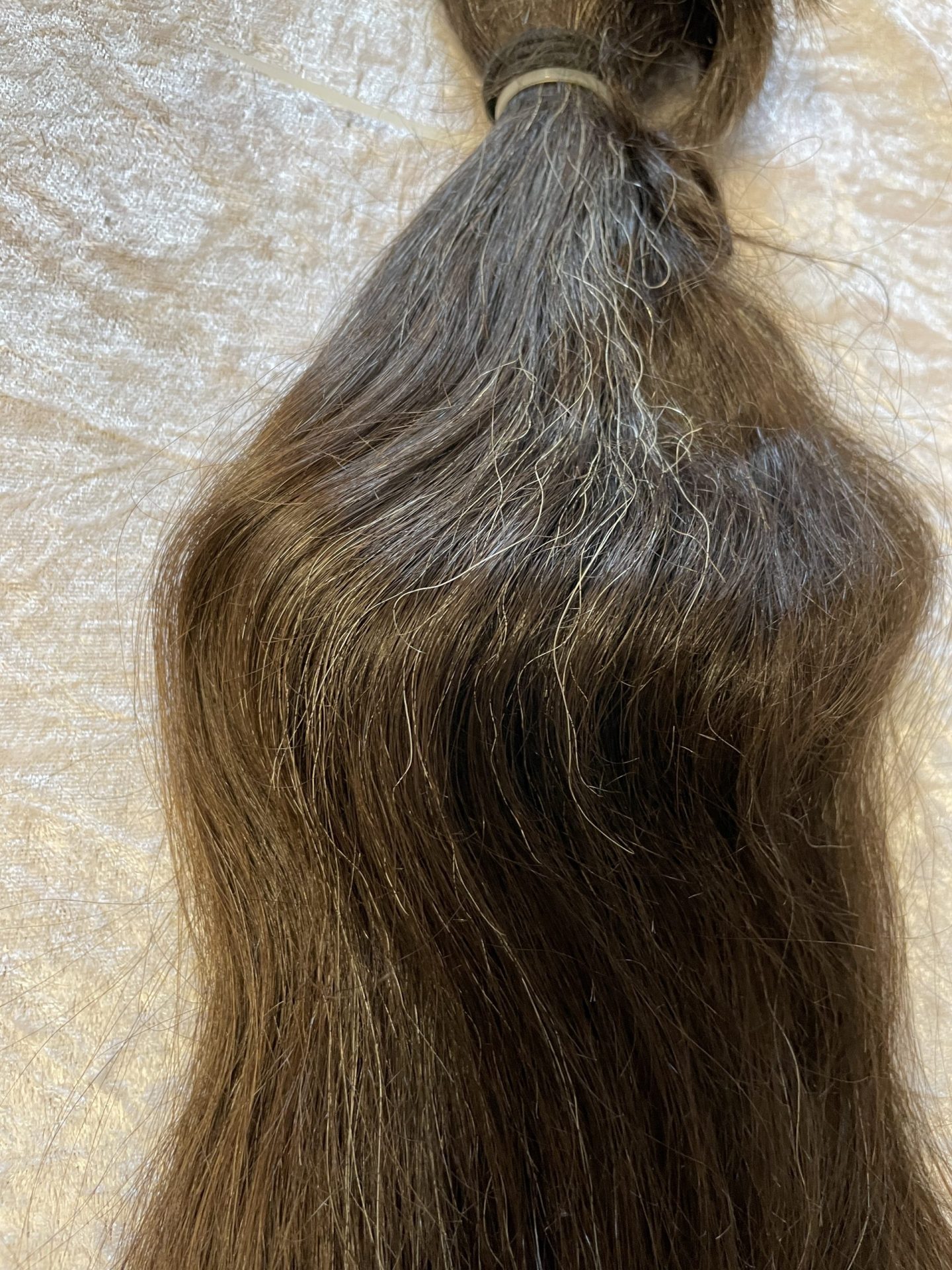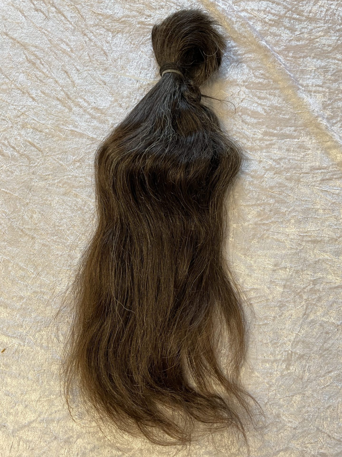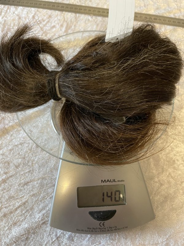 Bei Lieferungen in Nicht-EU-Länder können zusätzliche Zölle, Steuern und Gebühren anfallen.Schöner brauner bis dunkelbrauner Zopf, leichte Struktur, leichter Schwung, griffig. Haar ist gepflegt. Zopf hat Unterlängen und vereinzelt graue Haare am Ansatz. Länge 45cm+.