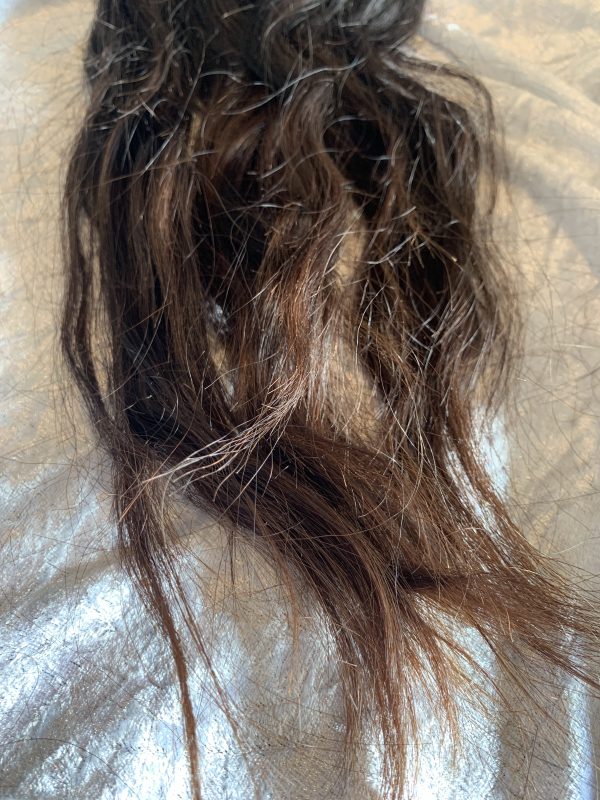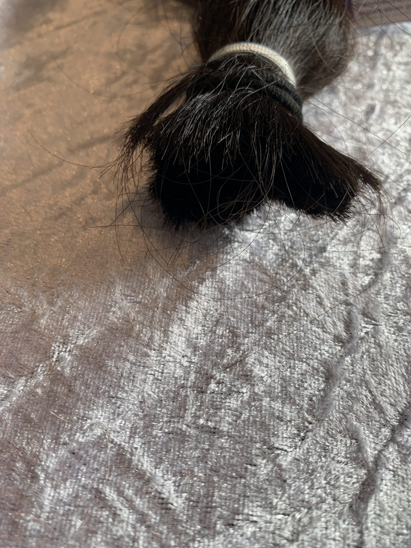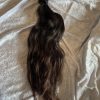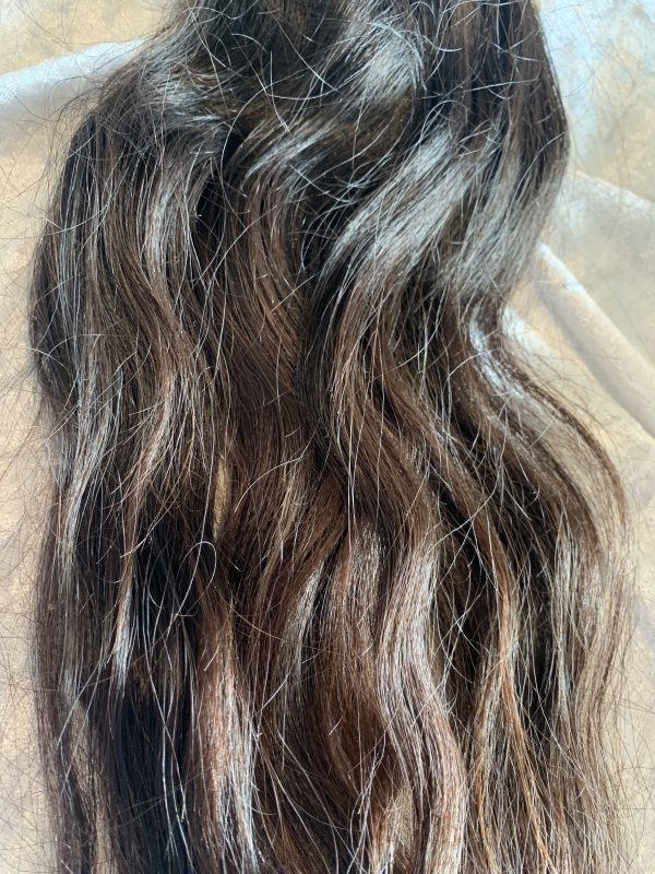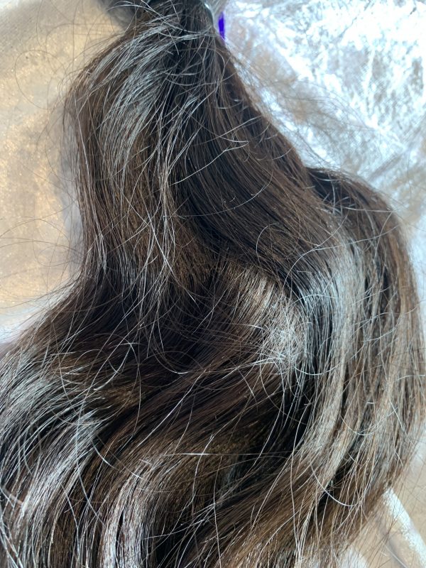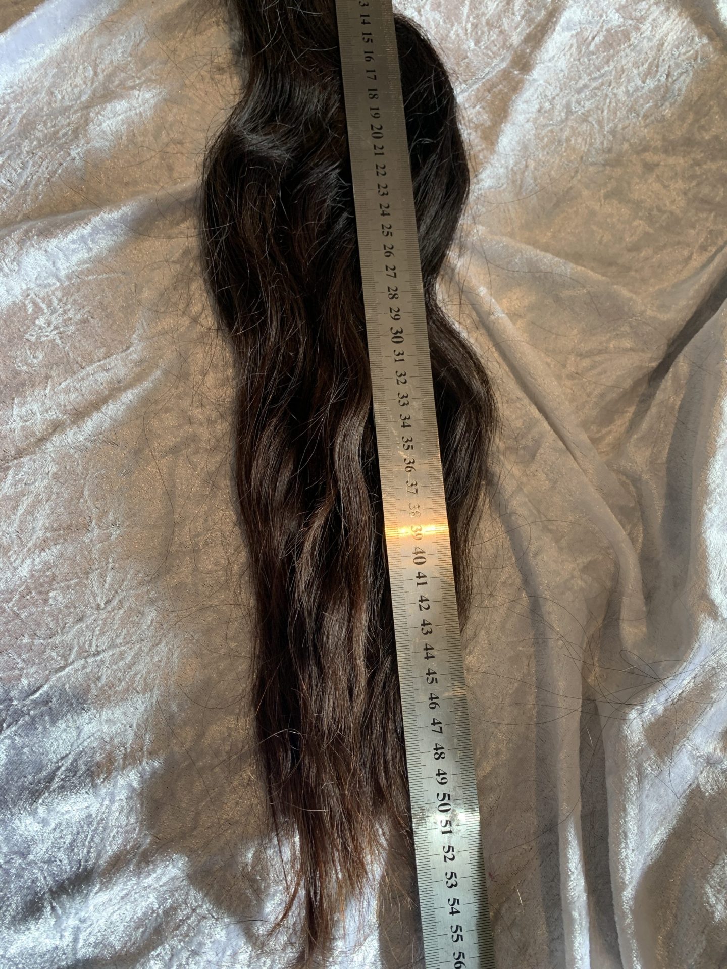 Bei Lieferungen in Nicht-EU-Länder können zusätzliche Zölle, Steuern und Gebühren anfallen.Dunkelbrauner Zopf, gepflegt, etwas trocken, starke Struktur, 47 cm, in Spitzen über 52 cm, einige Unterlängen. Haar ist natürlich gesträhnt und in den Spitzen heller als am Ansatz, natürlich von der Sonne aufgehellt.