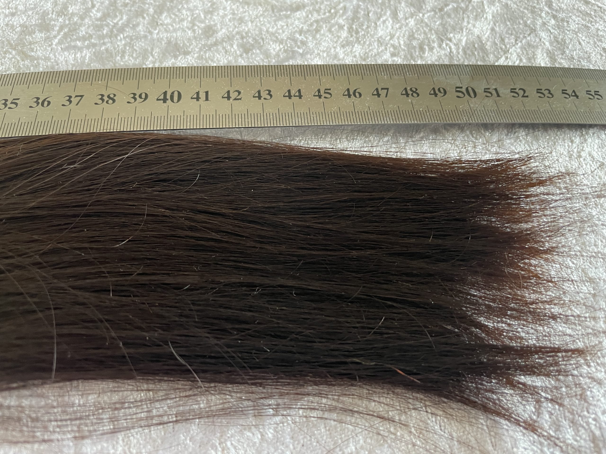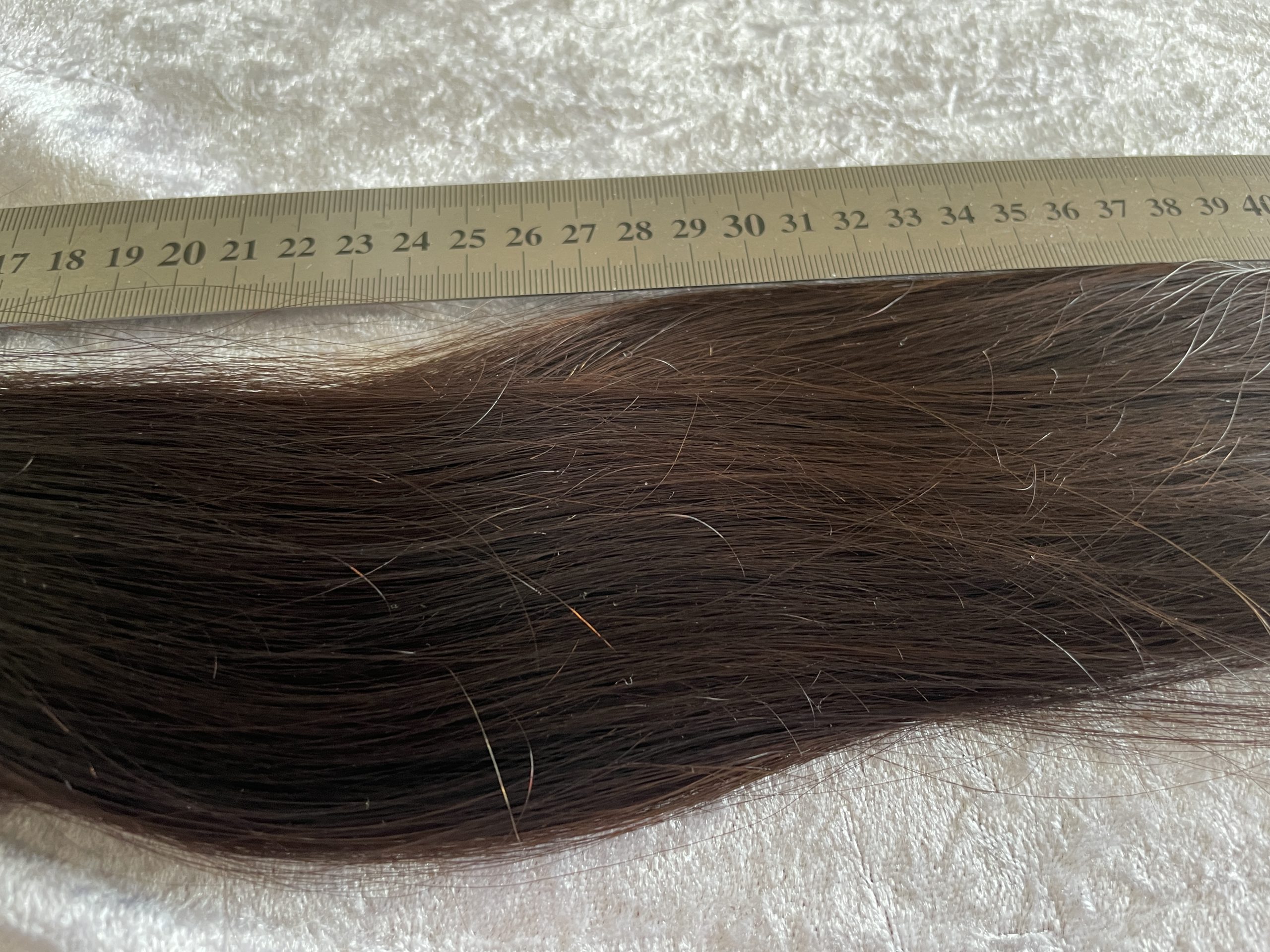 Bei Lieferungen in Nicht-EU-Länder können zusätzliche Zölle, Steuern und Gebühren anfallen.Dunkelbrauner Zopf, gute Struktur, kräftig, glatt, sehr gepflegt. Kühl auf der Haut, für diese Farbe recht feines Haar. Zopf hat wenige Unterlängen.