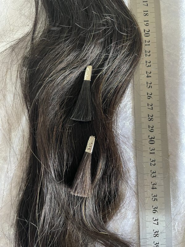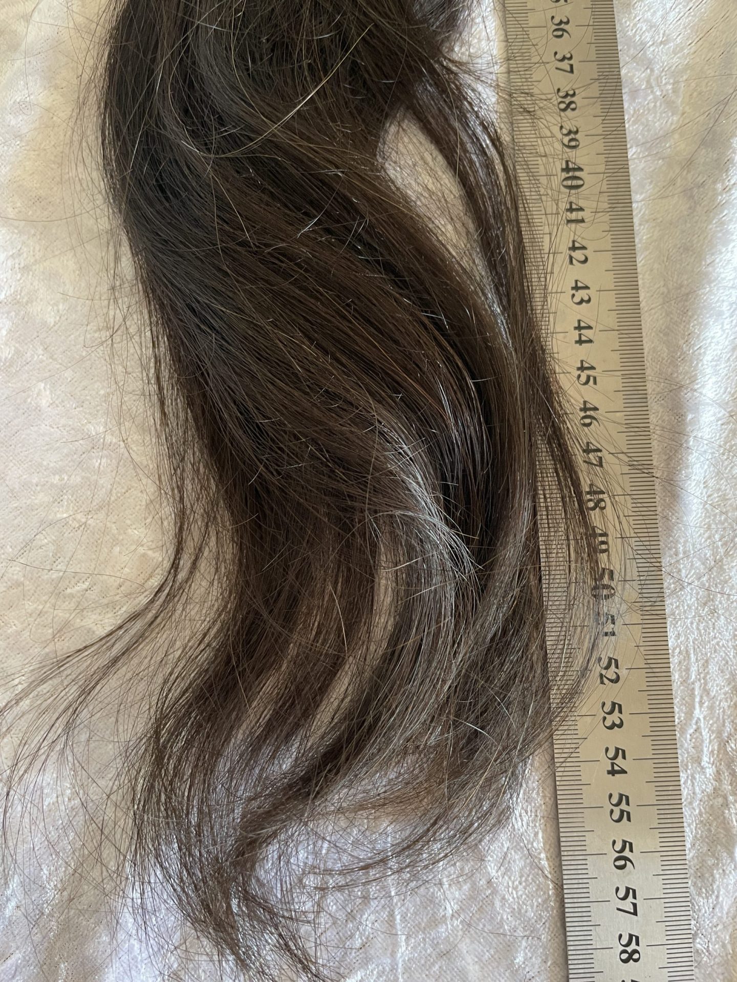 Bei Lieferungen in Nicht-EU-Länder können zusätzliche Zölle, Steuern und Gebühren anfallen.Schöner, langer Zopf, dunkelbraun, glatt mit leichtem Schwung. Relativ fest und gepflegt für dunkles Haar. Zopf hat einige Unterlängen, 57 cm in Spitzen etwas länger.