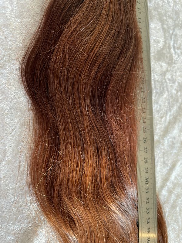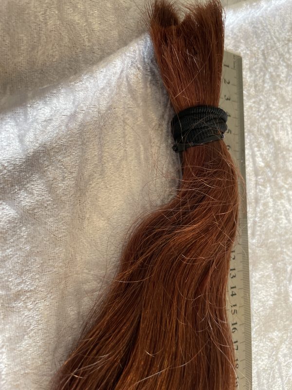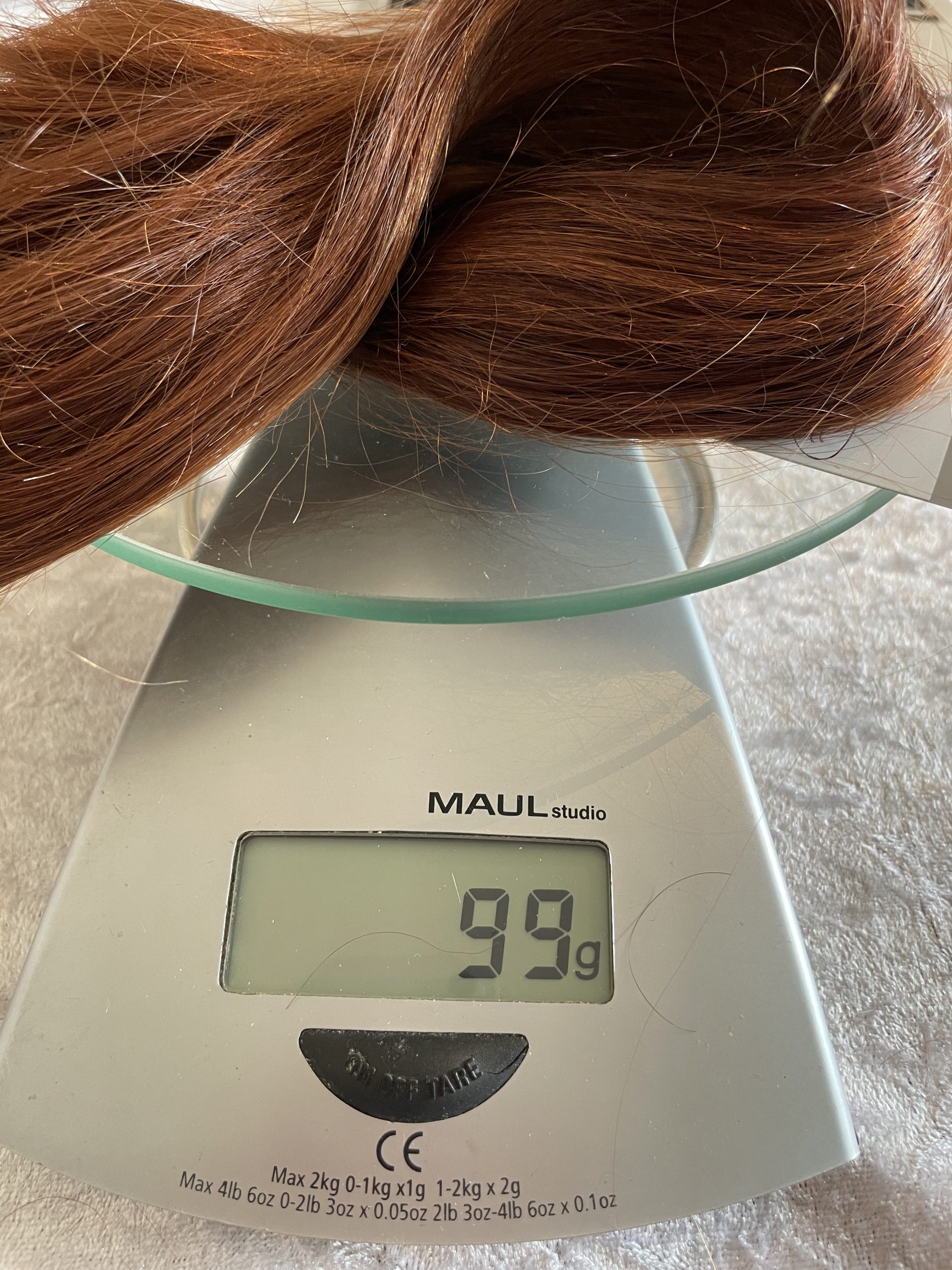 Bei Lieferungen in Nicht-EU-Länder können zusätzliche Zölle, Steuern und Gebühren anfallen.Sehr schöner, dunkelroter Zopf, gute Struktur, mittelfeines Haar, sehr leichter Schwung, gepflegt. Zopf hat einige Unterlängen. Das Haar ist wahrscheinlich gefärbt/getönt..