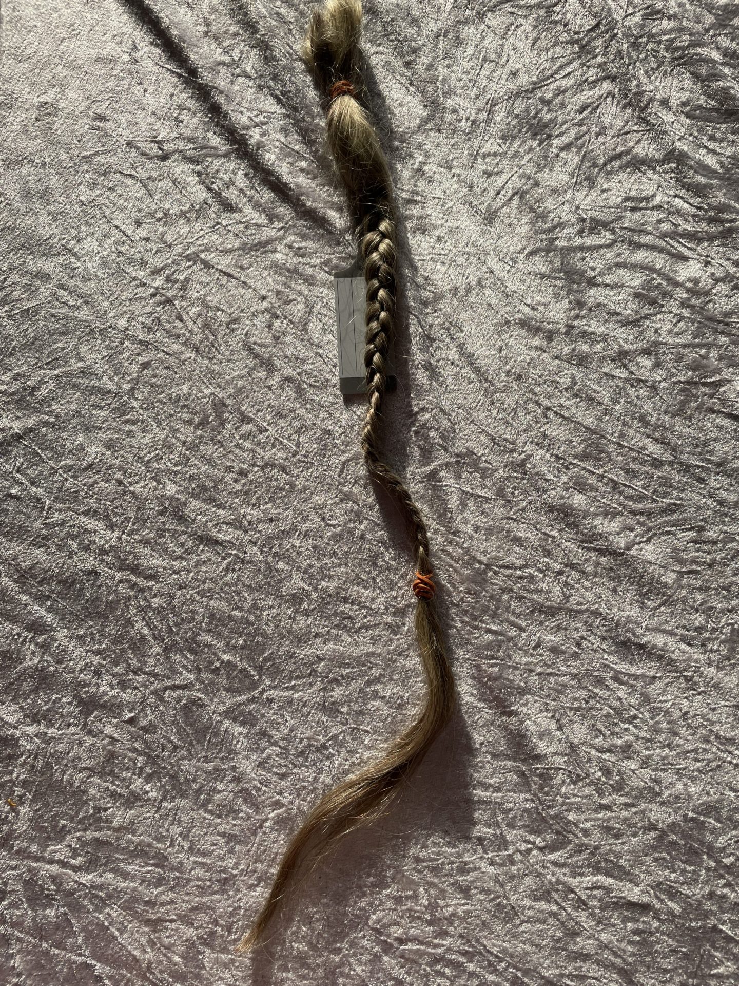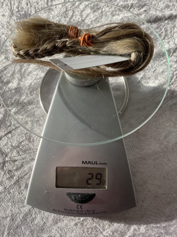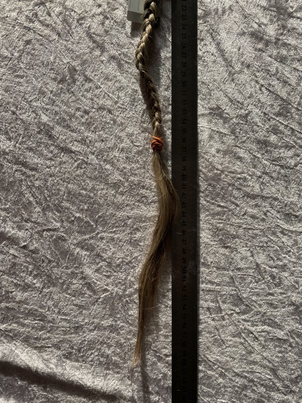 Bei Lieferungen in Nicht-EU-Länder können zusätzliche Zölle, Steuern und Gebühren anfallen.Sehr kleiner, schöner Zopf, grau (war wohl mal blond) gut gepflegt, leichte Struktur, sehr leichter Schwung. Hat Unterlängen