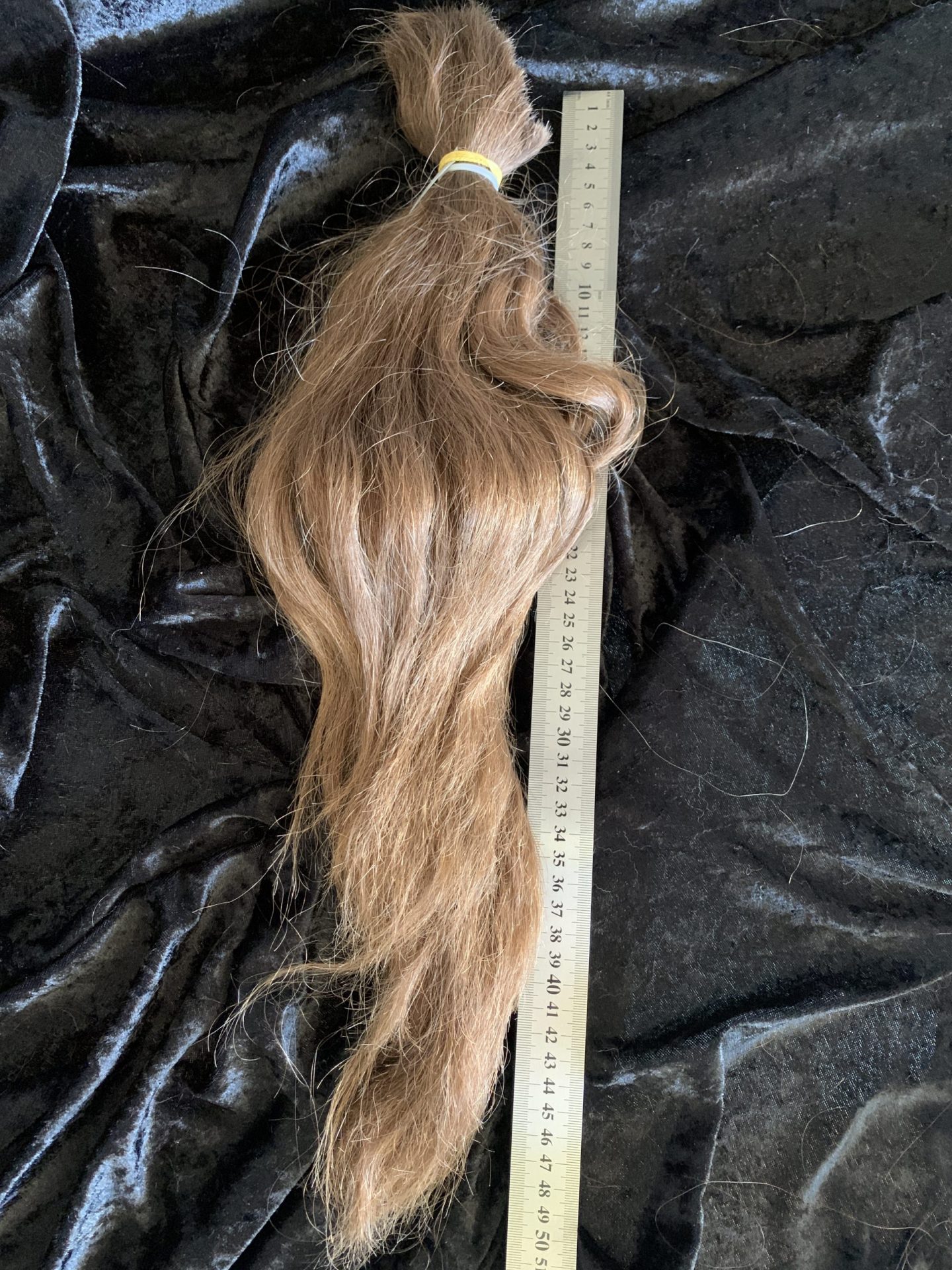 Bei Lieferungen in Nicht-EU-Länder können zusätzliche Zölle, Steuern und Gebühren anfallen.Dunkelblonder bis hellbrauner Zopf, hat deutliche Unterlängen, 42 cm, in Spitzen bis etwa 50 cm. Deutliche Struktur, griffig, schöne, leichte Welle. Fällt recht voll.