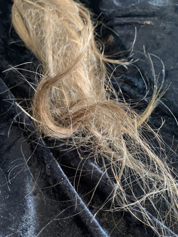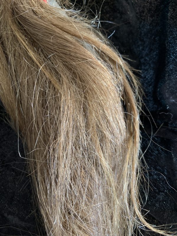 Bei Lieferungen in Nicht-EU-Länder können zusätzliche Zölle, Steuern und Gebühren anfallen.Älterer, mittelblonder Zopf, hat einige Unterlängen, 35 cm, in Spitzen bis etwa 40 cm, trocken und stumpf, braucht eine Kur. Aufgrund der Lagerung etwas verfilzt, muß aufbereitet werden.