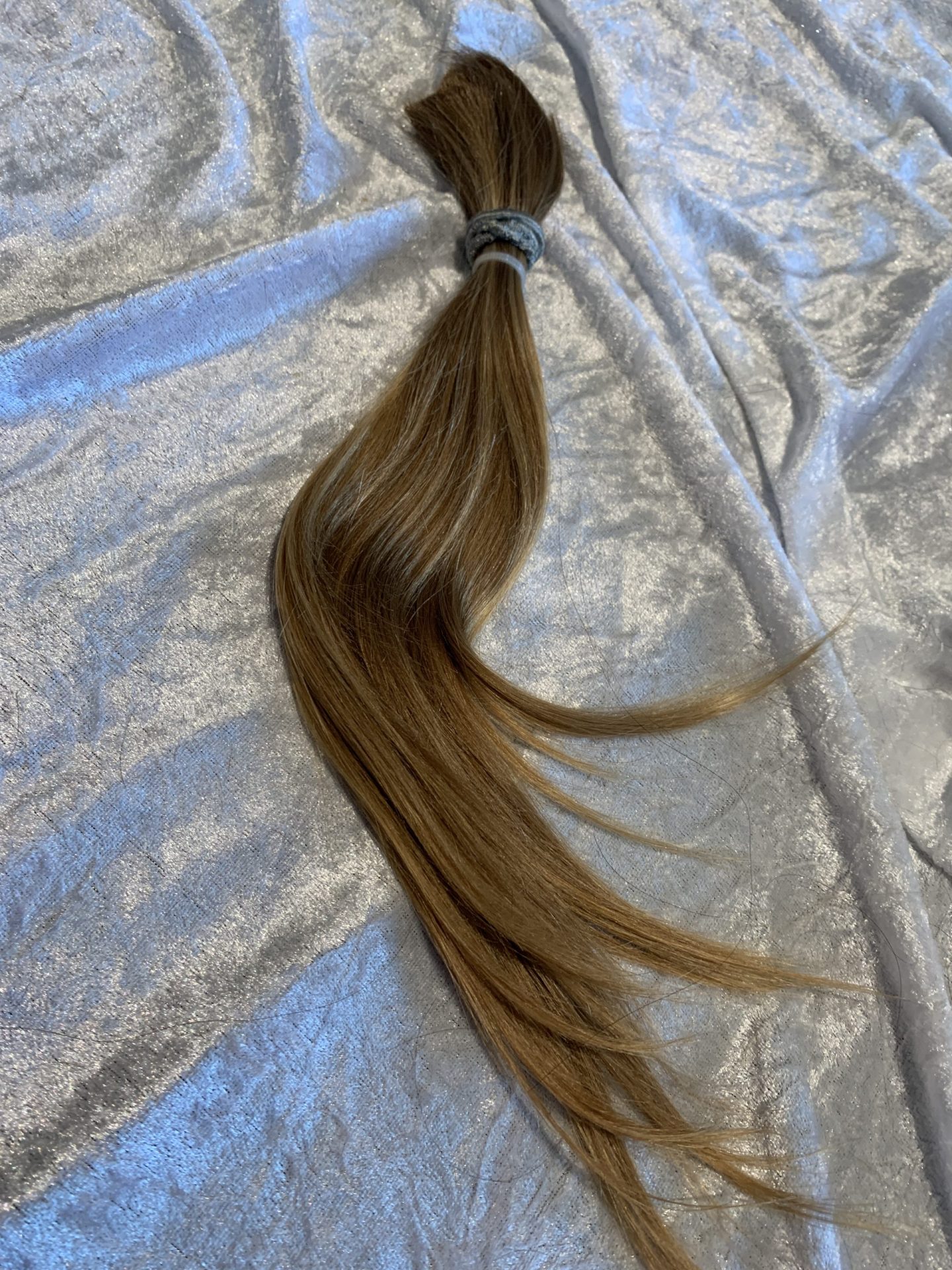 Bei Lieferungen in Nicht-EU-Länder können zusätzliche Zölle, Steuern und Gebühren anfallen.Sehr schöner blonder Zopf, top gepflegtes Haar, sehr seidig, sehr fein, glatt, sehr leichter Schwung, Länge 30 cm, in Spitzen bis 34 cm, einige Unterlängen. Natürliche Strähnen, in den Spitzen heller als am Ansatz.