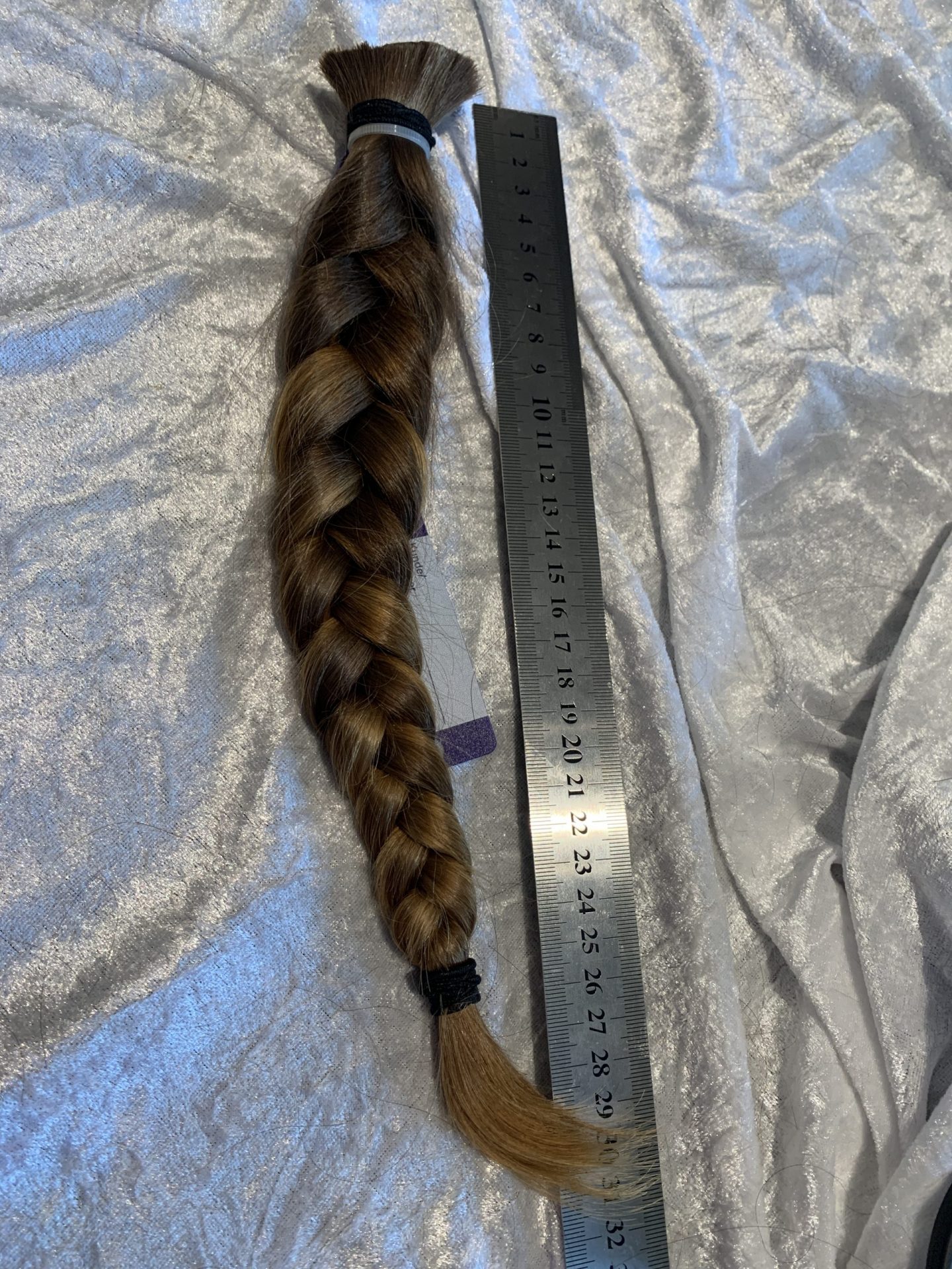 Bei Lieferungen in Nicht-EU-Länder können zusätzliche Zölle, Steuern und Gebühren anfallen.Sehr schöner mittelblonder Zopf, top gepflegtes Haar, seidig, sehr fein, glatt, sehr leichter Schwung, Länge 30 cm, in Spitzen länger (geflochten), einige Unterlängen. Natürliche Strähnen, in den Spitzen heller als am Ansatz.