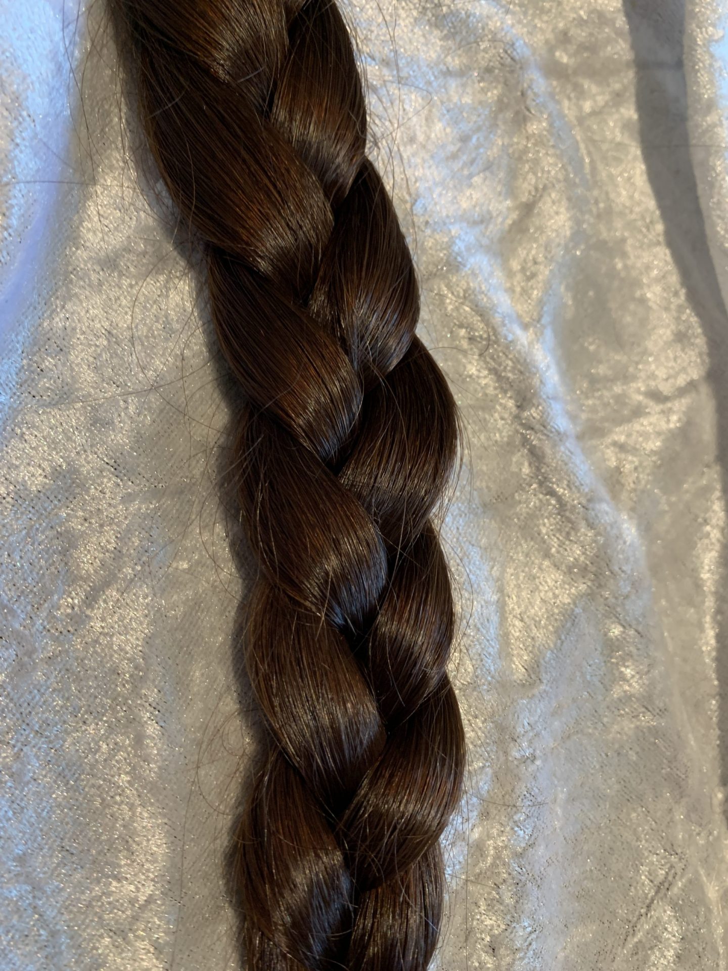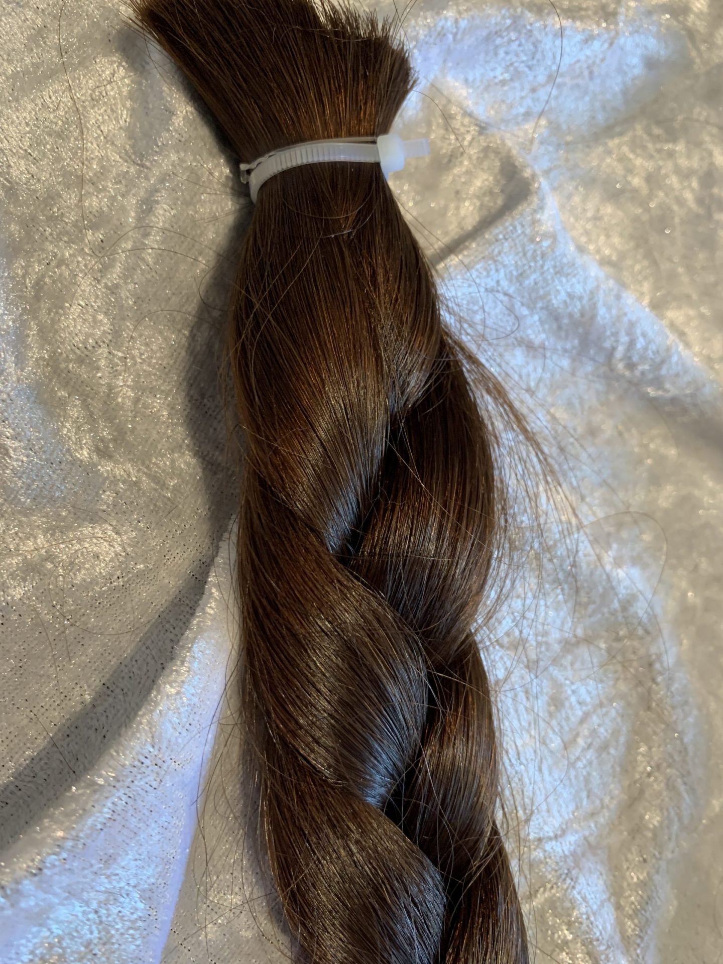 Bei Lieferungen in Nicht-EU-Länder können zusätzliche Zölle, Steuern und Gebühren anfallen.brauner Zopf, gute Struktur, schöner Glanz, Länge 34 cm, in Spitzen bis über 38 cm, einige Unterlängen.