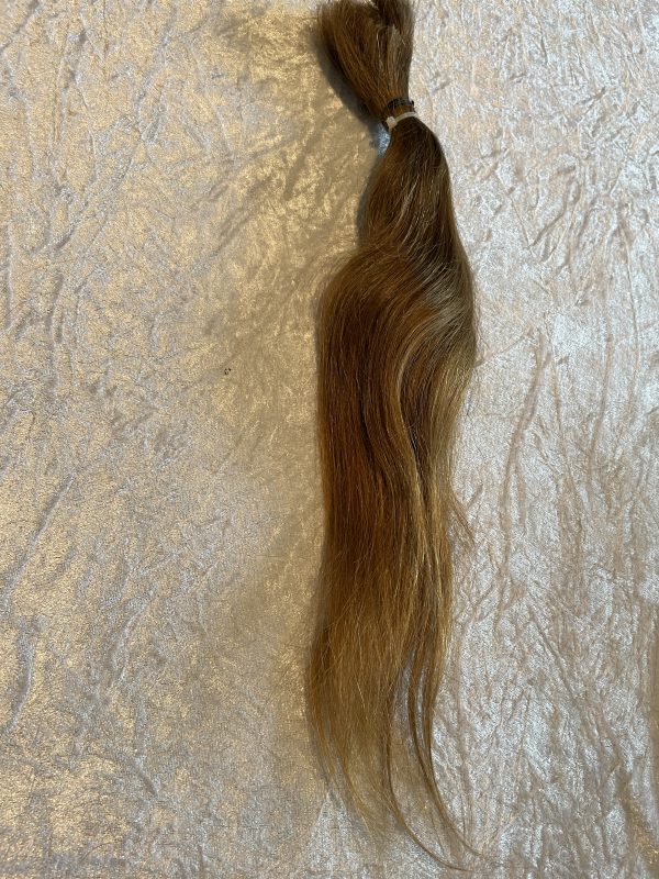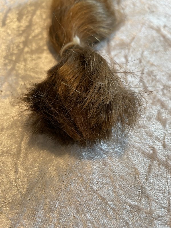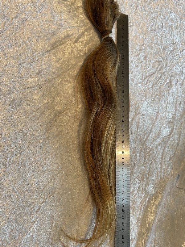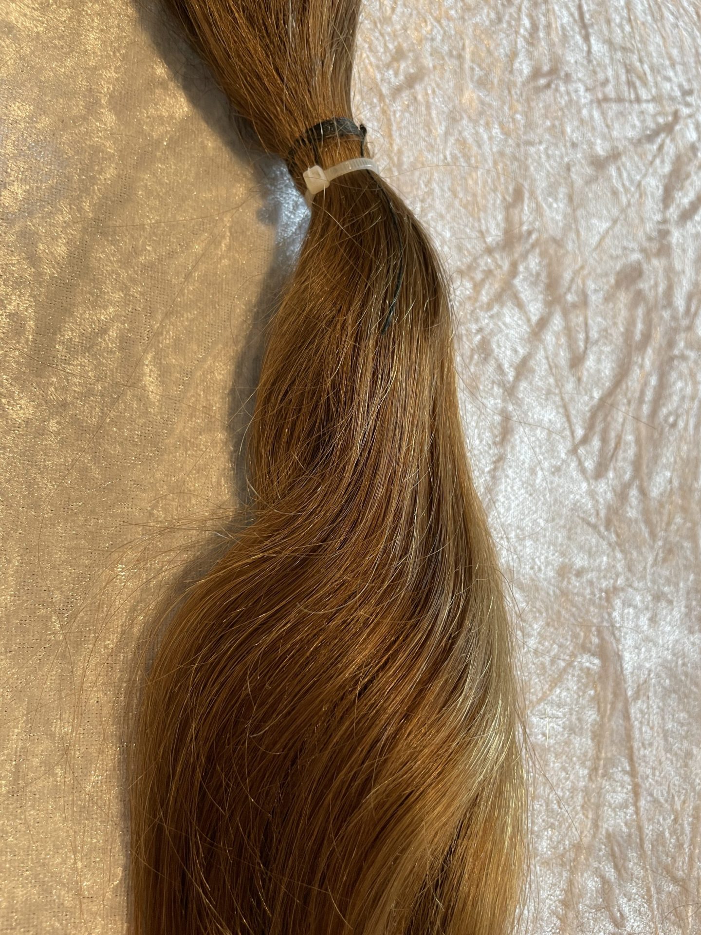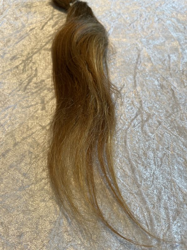 Bei Lieferungen in Nicht-EU-Länder können zusätzliche Zölle, Steuern und Gebühren anfallen.Hübscher mittelblonder Zopf, glatt mit leichtem Schwung, etwas stumpf, gute Struktur, Haar ist etwas trocken, braucht eine Kur. Länge 38 cm in Spitzen bis etwa 42 cm. Hat Unterlängen.